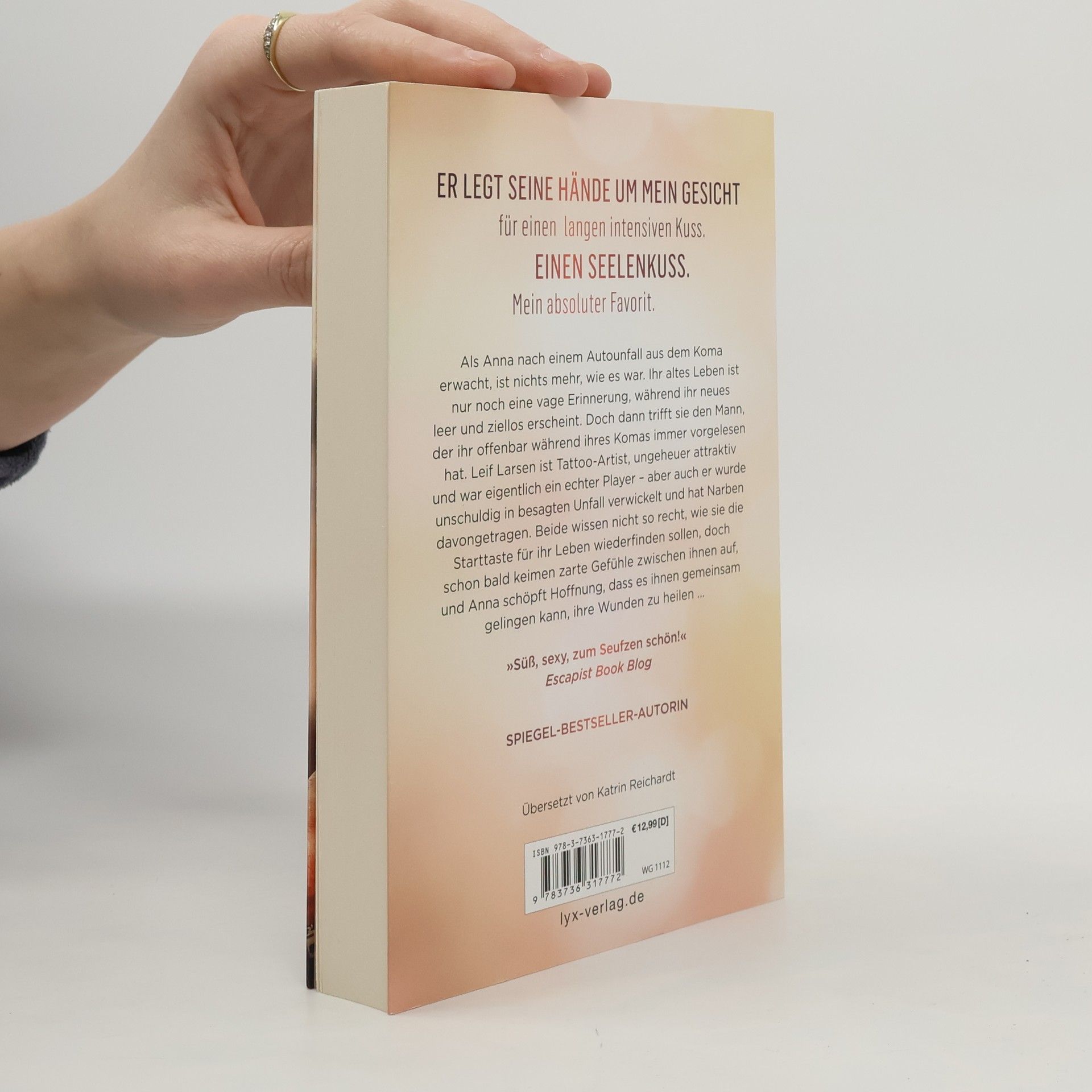 Er legt seine Hände um mein Gesicht für einen langen intensiven Kuss. Einen Seelenkuss. Mein absoluter Favorit. Als Anna nach einem Autounfall aus dem Koma erwacht, ist nichts mehr, wie es war. Ihr altes Leben ist nur noch eine vage Erinnerung, während ihr neues leer und ziellos erscheint. Doch dann trifft sie den Mann, der ihr offenbar während ihres Komas immer vorgelesen hat. Leif Larsen ist Tattoo-Artist, ungeheuer attraktiv und war eigentlich ein echter Player - aber auch er wurde unschuldig in besagten Unfall verwickelt und hat Narben davon getragen. Beide wissen nicht so recht, wie sie die Starttaste für ihr Leben wiederfinden sollen, doch schon bald keimen zarte Gefühle zwischen ihnen auf, und Anna schöpft Hoffnung, dass es ihnen gemeinsam gelingen kann, ihre Wunden zu heilen ... „Süß, sexy, zum Seufzen schön!“ ESCAPIST BOOK BLOG