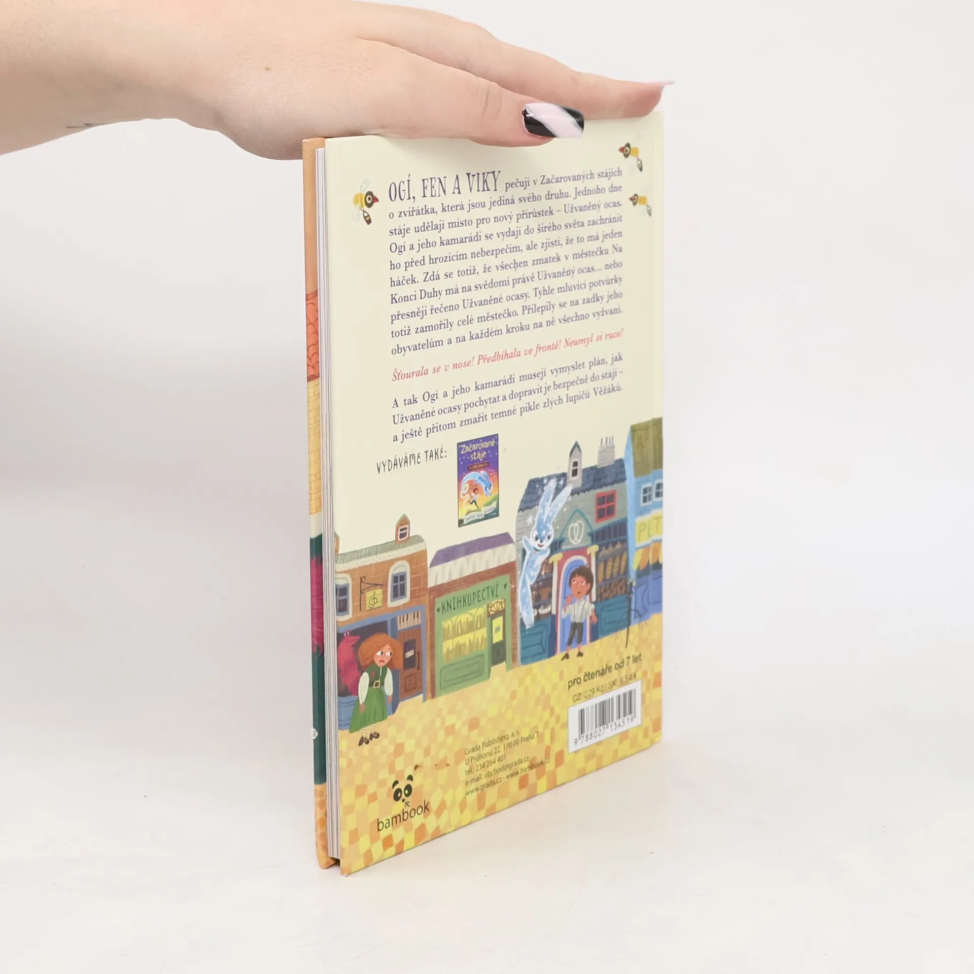 Ogí, Fen a Viky pečují v Začarovaných stájích o zvířátka, která jsou jediná svého druhu. Jednoho dne stáje udělají místo pro nový přírůstek – Užvaněný ocas. Ogí a jeho kamarádi se vydají do širého světa zachránit ho před hrozícím nebezpečím, ale zjistí, že to má jeden háček. Zdá se totiž, že všechen zmatek v městečku Na Konci Duhy má na svědomí právě Užvaněný ocas… nebo přesněji řečeno Užvaněné ocasy. Tyhle mluvící potvůrky totiž zamořily celé městečko. Přilepily se na zadky jeho obyvatelům a na každém kroku na ně všechno vyžvaní. Šťourala se v nose! Předbíhala ve frontě! Neumyl si ruce! A tak Ogí a jeho kamarádi musejí vymyslet plán, jak Užvaněné ocasy pochytat a dopravit je bezpečně do stájí – a ještě přitom zmařit temné pikle zlých lupičů Věžáků.