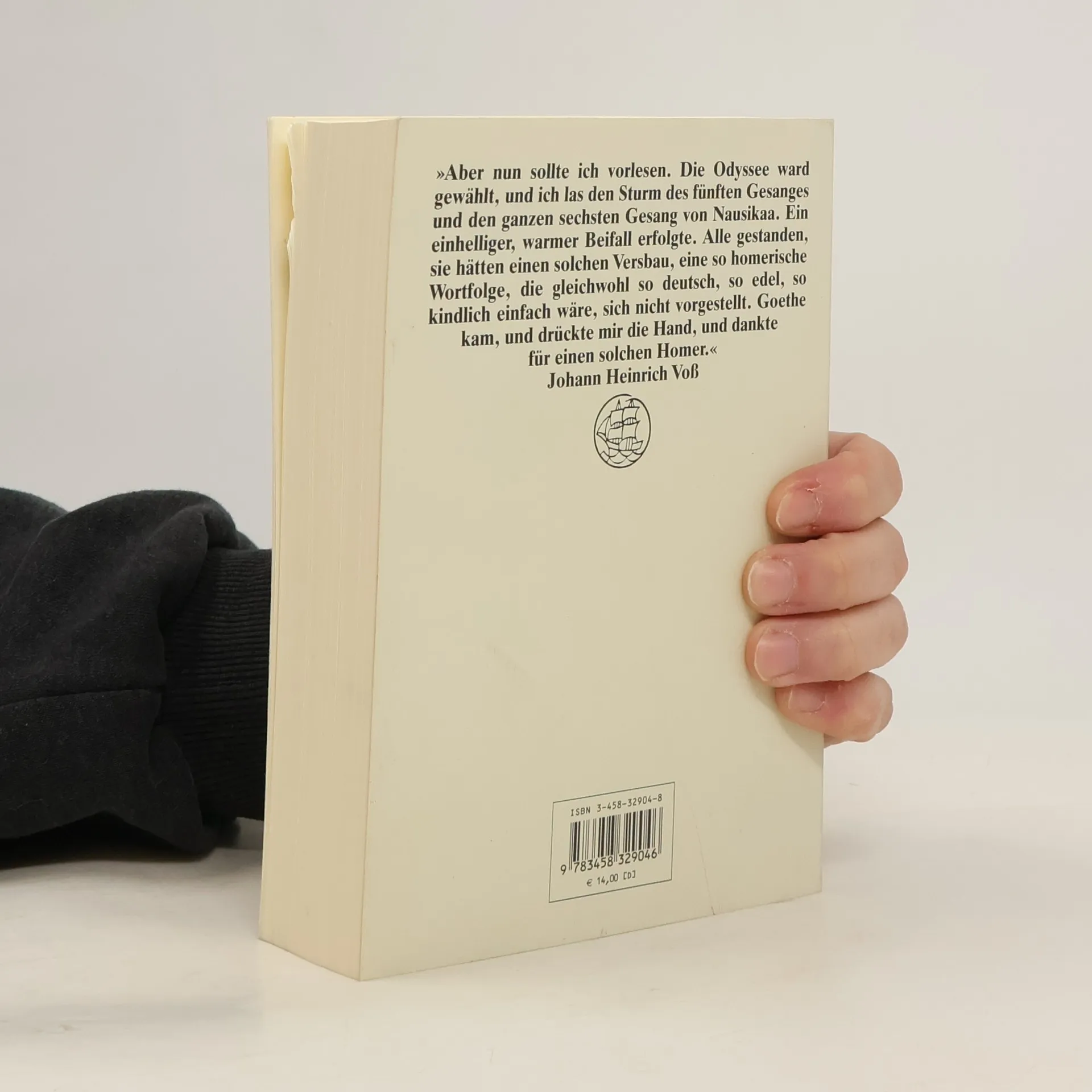 "Aber nun sollte ich vorlesen. Die Odyssee ward gewählt, und ich las den Sturm des fünften Gesanges und den ganzen sechsten Gesang von Nausikaa. Ein einhelliger, warmer Beifall erfolgte. Alle gestanden, sie hätten einen solchen Verbsau, eine so homerische Wortfolge, die gleichwohl so deutsch, so edel, so kindlich einfach wäre, sich nicht vorgestellt. Goethe kam, drückte mir die Hand, und dankte für einen solchen Homer." Johann Heinrich Voß