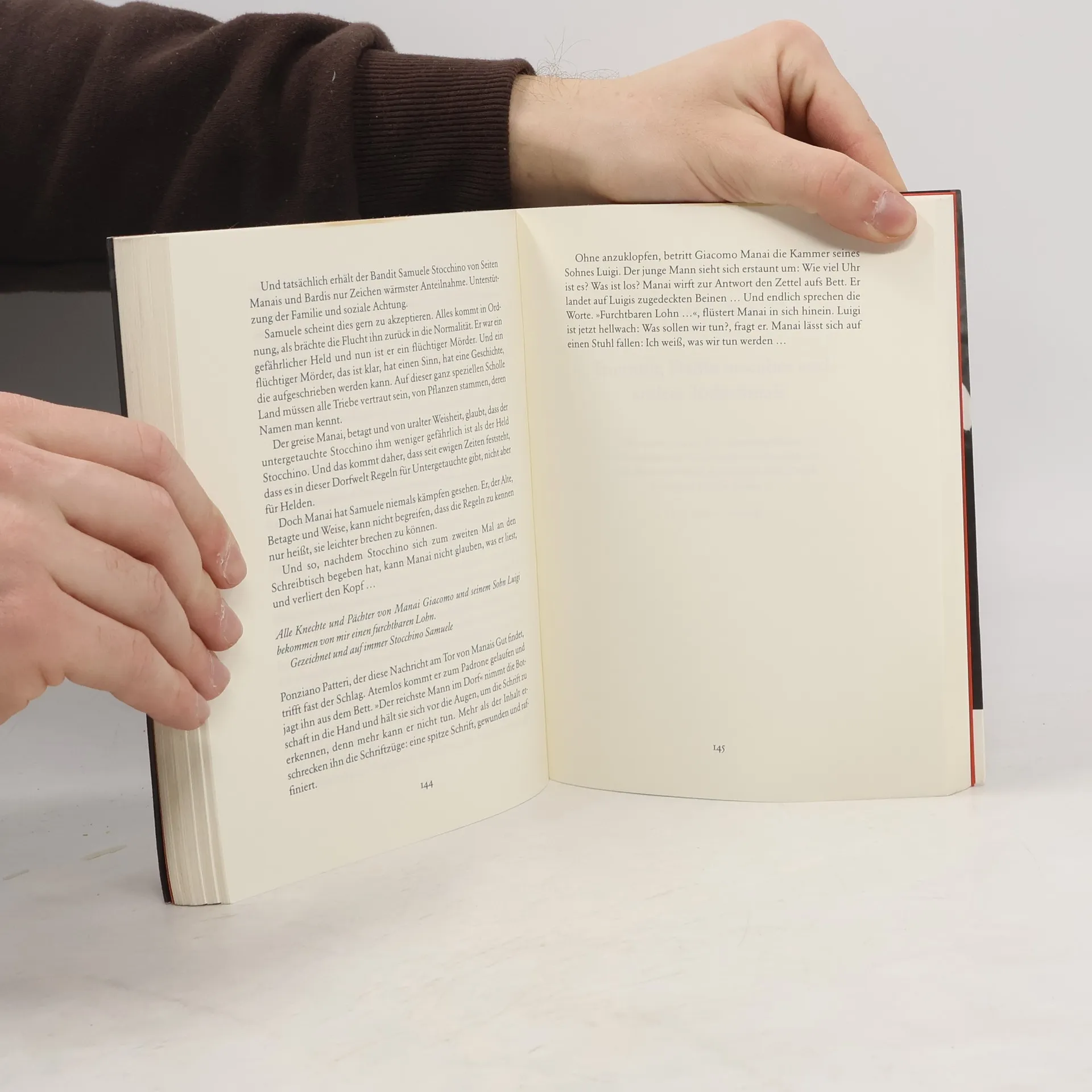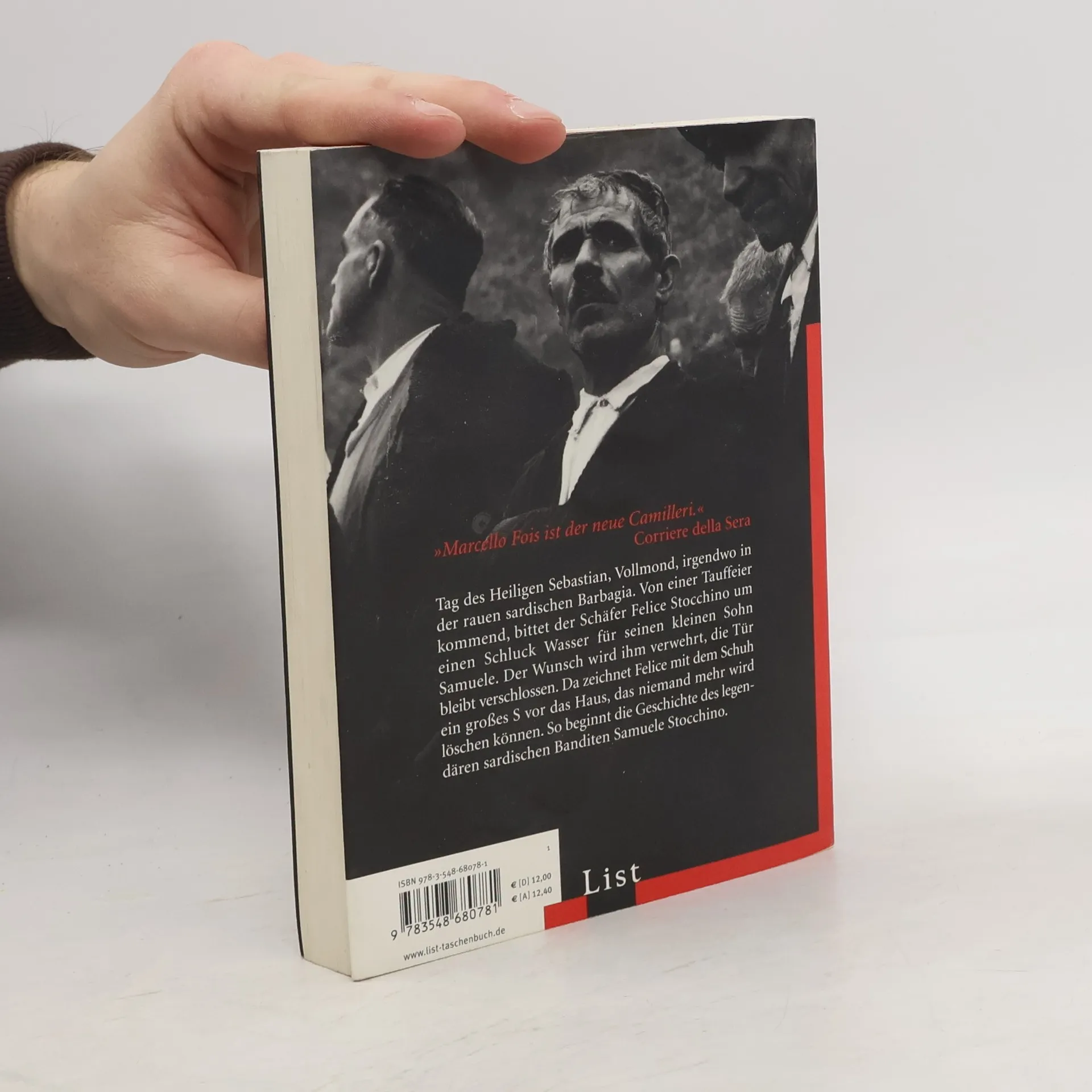 Tag des Heiligen Sebastian, Vollmond, irgendwo in der rauen sardischen Barbagia. Von einer Tauffeier kommend, bittet der Schäfer Felice Stocchino um einen Schluck Wasser für seinen kleinen Sohn Samuele. Der Wunsch wird ihm verwehrt, die Tür bleibt verschlossen. Da zeichnet Felice mit dem Schuh ein großes S vor das Haus, das niemand mehr wird löschen können … So beginnt die Geschichte des legendären sardischen Banditen Samuele Stocchino, die Marcello Fois meisterhaft erzählt.