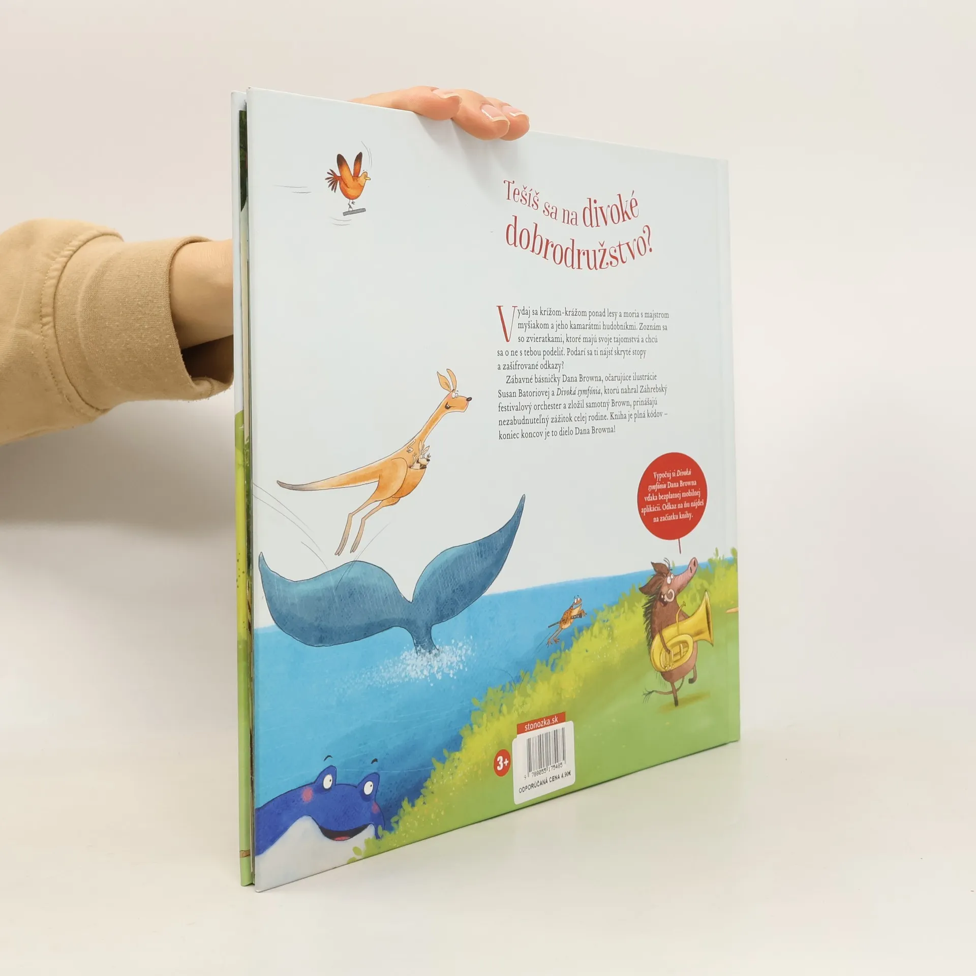 Dan Brown, najpredávanejší autor podľa New York Times, autor Da Vinciho kódu, tentoraz pripravil divoké dobrodružstvo pre deti. A nejde len o obyčajnú knihu. Sprevádza ju hudba – Divoká symfónia! Vydaj sa krížom-krážom ponad lesy a moria s majstrom myšiakom a jeho kamarátmi hudobníkmi. Zoznám sa so zvieratkami, ktoré majú svoje tajomstvá a chcú sa o ne s tebou podeliť. Zábavné básničky Dana Browna, očarujúce ilustrácie Susan Batoriovej a Divoká symfónia, ktorú zložil samotný Brown a nahral Záhrebský festivalový orchester, prinášajú nezabudnuteľný zážitok celej rodine. Ak chceš počúvať hudbu, kým si budeš čítať, naskenuj si QR kód z knihy alebo navštív stránku wildsymphony.com a zadarmo si stiahni mobilnú aplikáciu. Popri čítaní a počúvaní hľadaj skryté stopy a zašifrované odkazy. Kniha je totiž plná kódov – koniec koncov je to dielo Dana Browna!