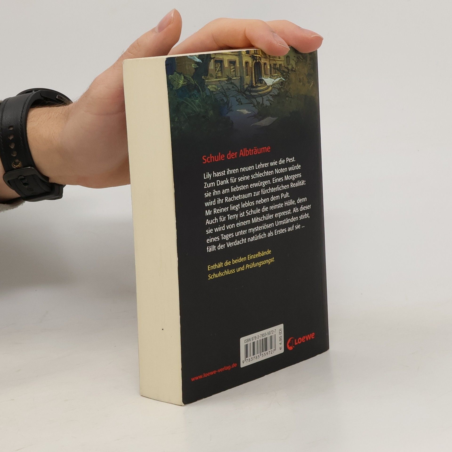Schule der AlbträumeLily hasst ihren neuen Lehrer wie die Pest. Zum Dank für seine schlechten Noten würde sie ihn am liebsten erwürgen. Eines Morgens wird ihr Rachetraum zur fürchterlichen Realität: Mr Reiner liegt leblos neben seinem Pult.Auch für Terry ist die Schule die reinste Hölle, denn sie wird von einem Mitschüler erpresst. Als dieser eines Tages unter mysteriösen Umständen stirbt, fällt der Verdacht natürlich als Erstes auf sie...Enthält die beiden Einzelbände "Schulschluss" und "Prüfungsangst"