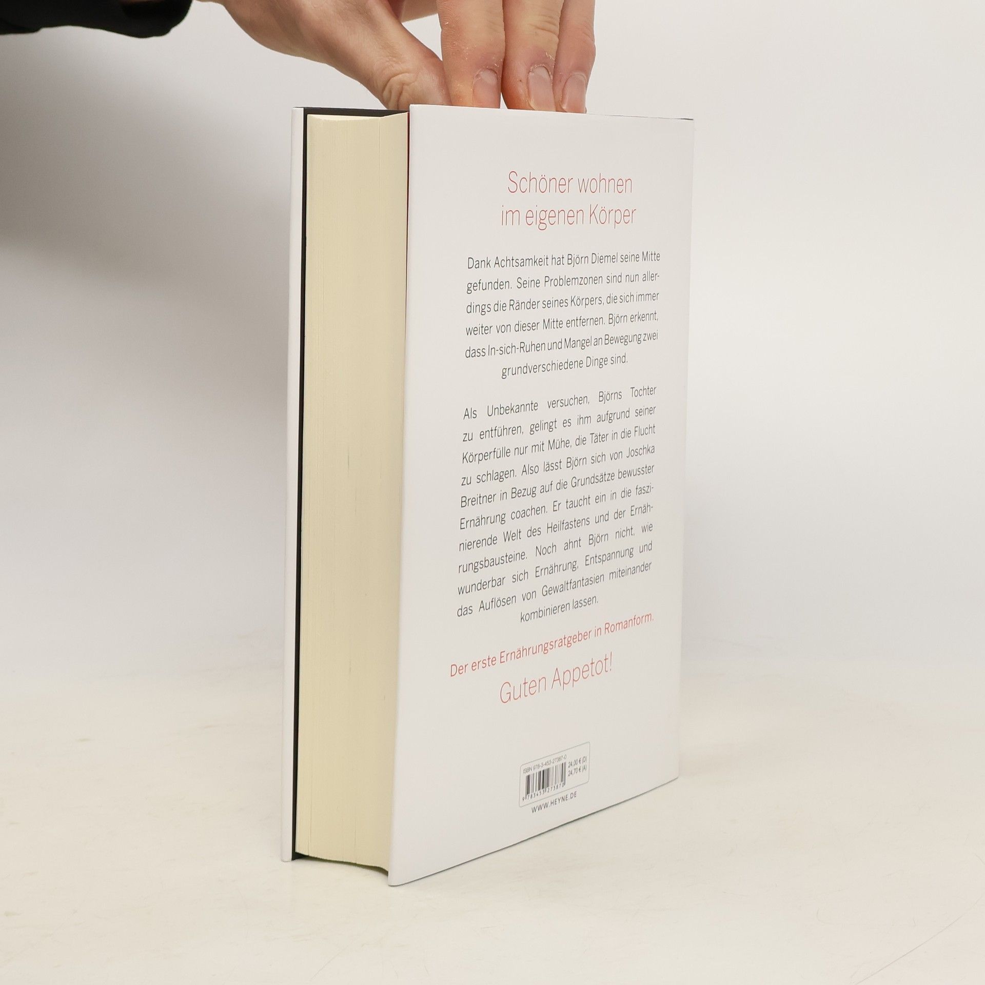 Guten Appetot! Dank Achtsamkeit hat Björn Diemel seine Mitte gefunden. Seine Problemzonen sind nun allerdings die Ränder seines Körpers, die sich immer weiter von dieser Mitte entfernen. Björn erkennt, dass In-sich-Ruhen und Mangel an Bewegung zwei grundverschiedene Dinge sind. Als Unbekannte versuchen, Björns Tochter zu entführen, gelingt es ihm aufgrund seiner Körperfülle nur mit Mühe, die Täter in die Flucht zu schlagen. Also lässt Björn sich von Joschka Breitner in Bezug auf die Grundsätze bewusster Ernährung coachen. Er taucht ein in die faszinierende Welt des Heilfastens und der Ernährungsbausteine. Noch ahnt Björn nicht, wie wunderbar sich Ernährung, Entspannung und das Auflösen von Gewaltfantasien miteinander kombinieren lassen.