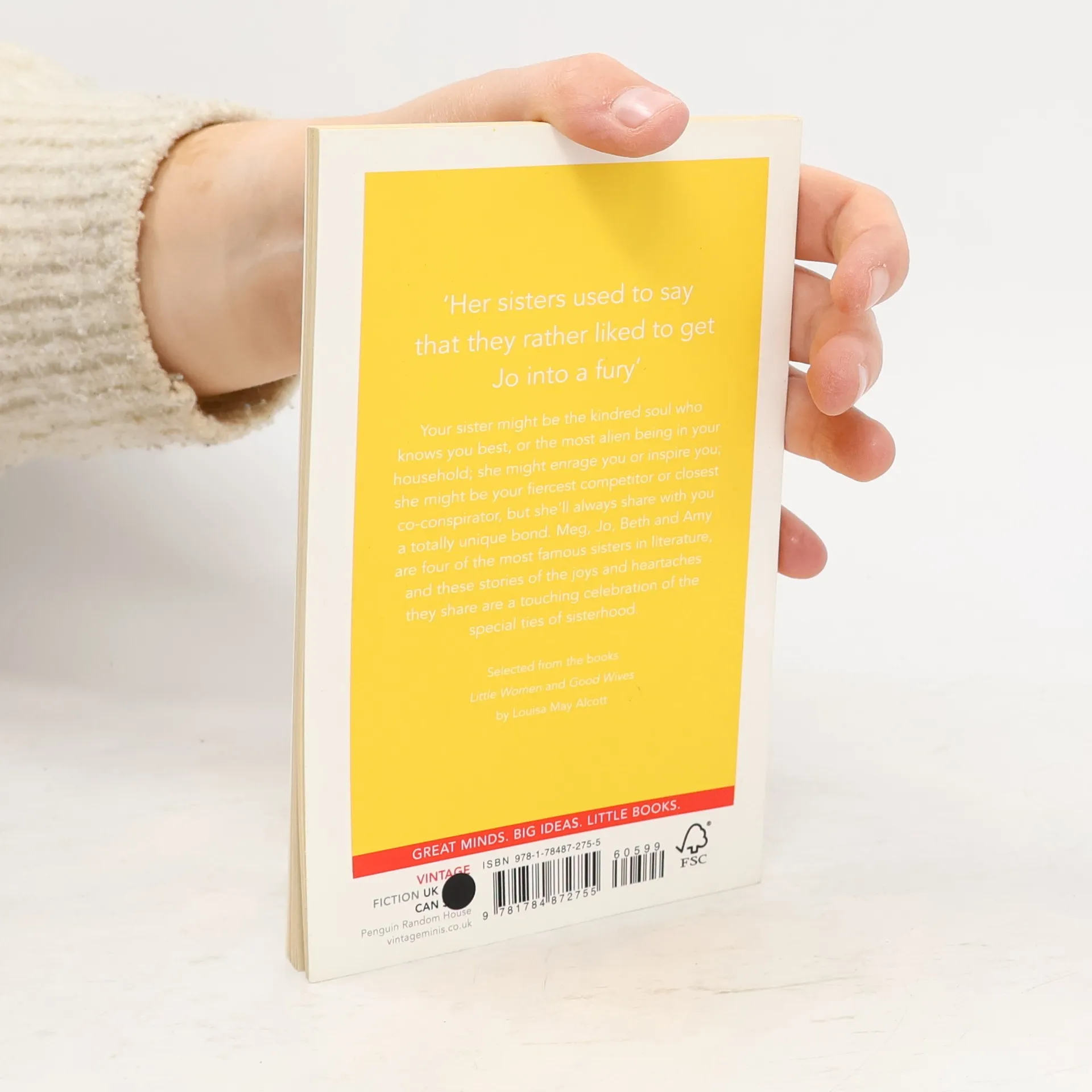Your sister might be the kindred soul who knows you best, or the most alien being in your household; she might enrage you or inspire you; she might be your fiercest competitor or closest co-conspirator, but she'll always share with you a totally unique bond. Meg, Jo, Beth and Amy are four of the most famous sisters in literature, and these stories of the joys and heartaches they share are a touching celebration of the special ties of sisterhood. Selected from the books Little Women and Good Wives by Louisa May Alcott VINTAGE MINIS: GREAT MINDS. BIG IDEAS. LITTLE BOOKS. A series of short books by the world’s greatest writers on the experiences that make us human Also in the Vintage Minis series: Fatherhood by Karl Ove Knausgaard Motherhood by Helen Simpson Babies by Anne Enright Love by Jeanette Winterson