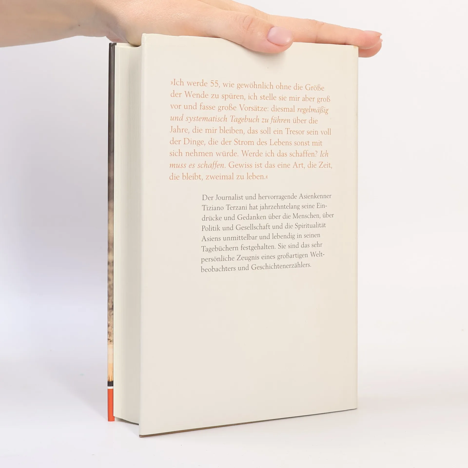 Die Tagebücher eines grossen Weltbeobachters Seine Tagebücher waren für Tiziano Terzani, langjähriger SPIEGEL-Korrespondent in Asien, Skizzenbuch für seine Reportagen und zugleich ein höchst privates Selbstzeugnis. Auf rund 3500 Seiten hat er, ein wunderbar aufmerksamer Beobachter, seit den 1980er Jahren seine Eindrücke aus Politik und Alltag festgehalten und sich dabei vor allem für Themen wie die Globalisierung, die Konsumgesellschaft, die asiatische Kultur und Philosophie sowie die Sinnleere der modernen Welt interessiert. Im Vergleich zu den veröffentlichten Reportagen sind seine Tagebuchaufzeichnungen persönlicher und unmittelbarer, auch suchender. Nachdem 1997 bei ihm Krebs diagnostiziert worden war, zog sich Terzani mehr und mehr zurück. Er beschäftigte sich von nun an zunehmend mit Meditation und fernöstlicher Lebensphilosophie und versuchte loszulassen von seinem rastlosen Leben. Die für diesen Band ausgewählten Einträge reichen bis kurz vor seinen Tod. Angela Terzani-Staude hat ein Vorwort verfasst.