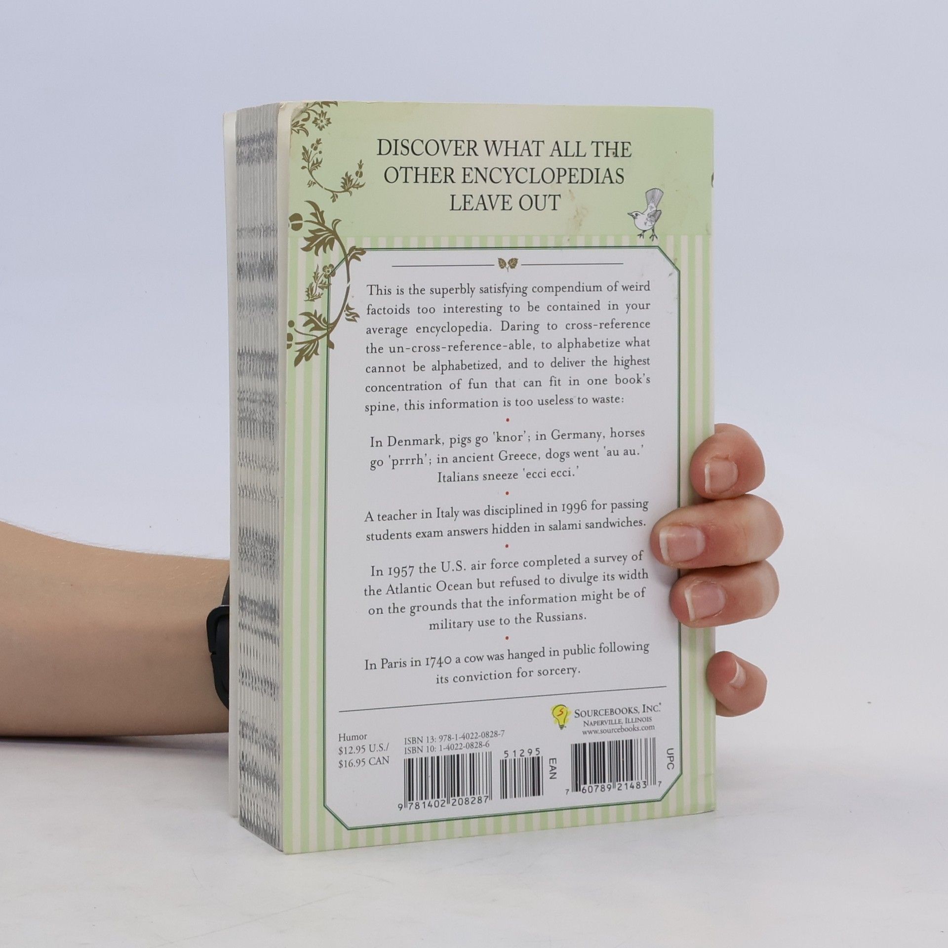 Discover what all the other encyclopedias leave out This is the superbly satisfying compendium of weird factoids too interesting to be contained in your average encyclopedia. Daring to cross-reference the un-cross-reference-able, to alphabetize what cannot be alphabetized, and to deliver the highest concentration of fun that can fit in one book's spine, this information is too useless to waste: In Denmark, pigs go 'knor'; in Germany, horses go 'prrrh'; in ancient Greece, dogs went 'au au.' Italians sneeze 'ecci ecci.' A teacher in Italy was disciplined in 1996 for passing students exam answers hidden in salami sandwiches. In 1957 the U.S. air force completed a survey of the Atlantic Ocean but refused to divulge its width on the grounds that the information might be of military use to the Russians. In Paris in 1740 a cow was hanged in public following its conviction for sorcery.