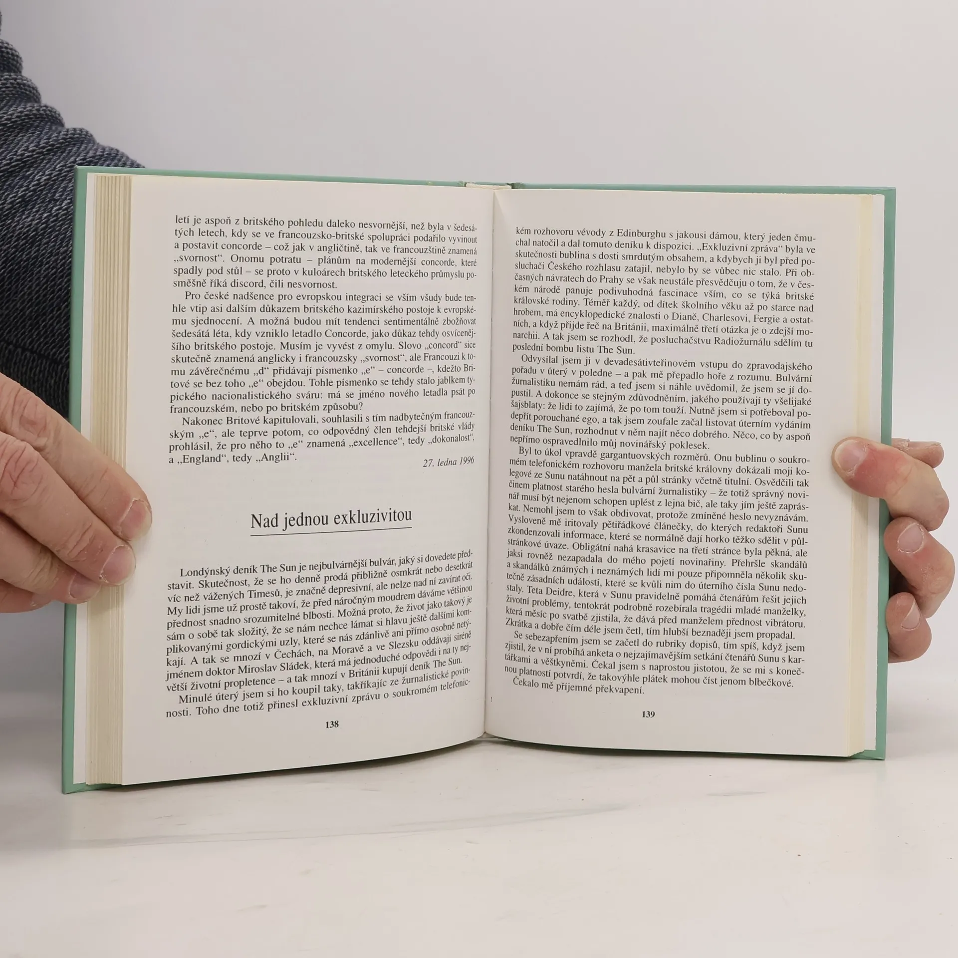 Zajímavé a vtipné postřehy z Anglie jsou věnovány nejrůznějším tématům. Fejetony jsou rozděleny do třech obsáhlých částí, kniha je dovedena až do současnosti, komentuje např. návštěvu anglické královny v ČR i návštěvu prezidenta Havla v Anglii.