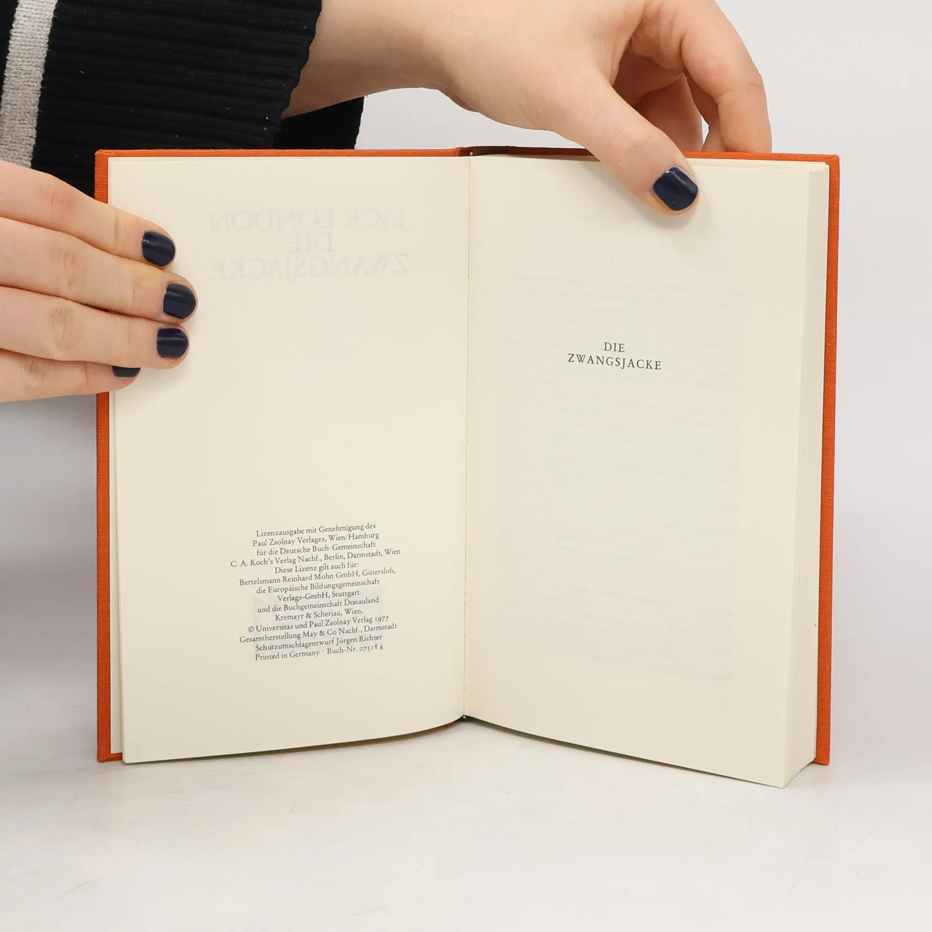 "Es war nicht meine Stimme, die des Nachts vor Schrecken vor unbekannten Dingen schrie, die ich wahrlich weder kannte noch kennen konnte. Und ebenso war es mit meinem kindlichen Zorn, meiner Liebe, meinen Freuden. Es waren andere Stimmen, die schrien, wenn ich schrie – Stimmen, die Männern und Frauen früherer Zeiten, dem ganzen Schattenheer meiner Vorfahren, angehörten. Und in meinem Wutgeheul tönte das wilde Tier, das älter ist als die Welt, die wir kennen – und wenn ich in der blinden, hysterischen Sinnlosigkeit meines Kinderzorns Blut sah, war meine Stimme abgestimmt auf das seelenlose, stupide Tiergebrüll vor Beginn der Zeiten." Jack London. Die Zwangsjacke. Übersetzt von Erwin Magnus. Durchgesehener Neusatz, Textgrundlage ist der Erstdruck dieser Übersetzung: Universitas - Deutsche Verlags-Aktiengesellschaft, Berlin 1930. Amerikanischer Originaltitel: The Star Rover, Macmillan Inc., New York, 1915. Englischer Titel: The Jacket, Mills and Boon, London 1915. Vollständige Neuausgabe, LIWI Verlag, Göttingen 2020. LIWI Literatur- und Wissenschaftsverlag