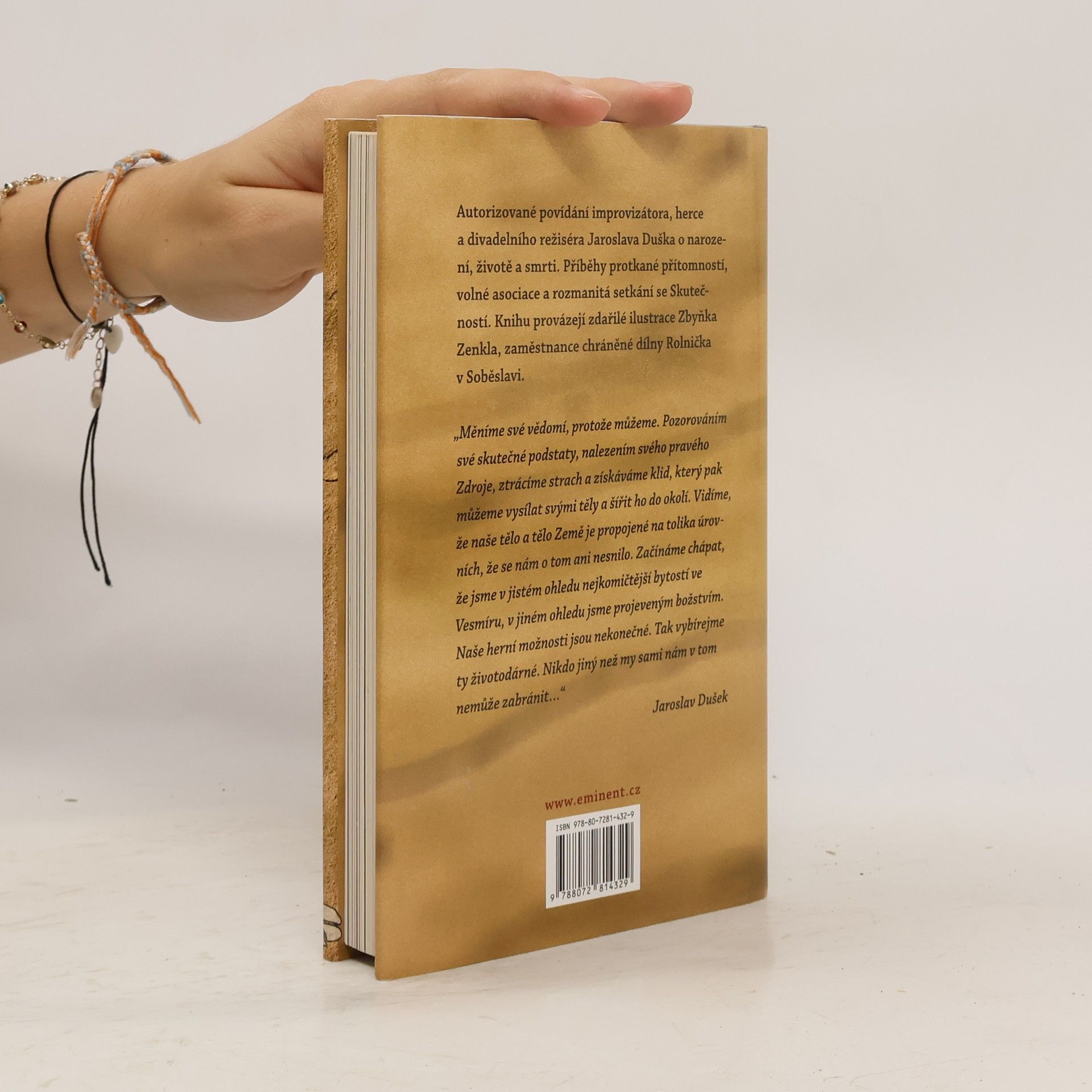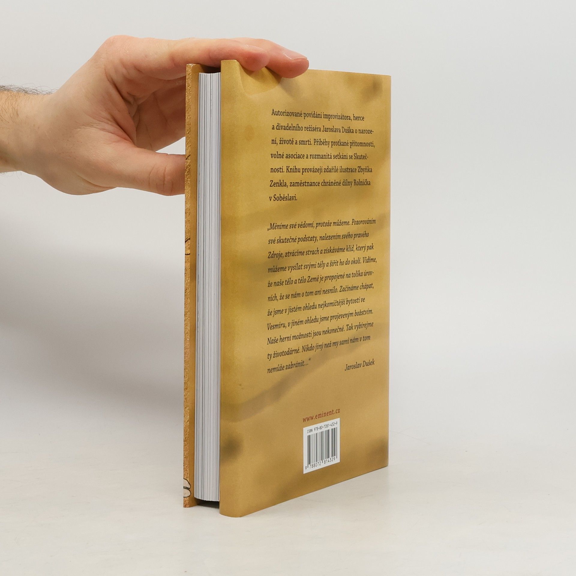 Autorizované povídání známého herce Jaroslava Duška o narození, životě a smrti. Příběhy protkané přítomností, volné asociace a rozmanitá setkání se Skutečností. Knihu provázejí zdařilé ilustrace Zbyňka Zenkla, zaměstnance chráněné dílny Rolnička v Soběslavi.