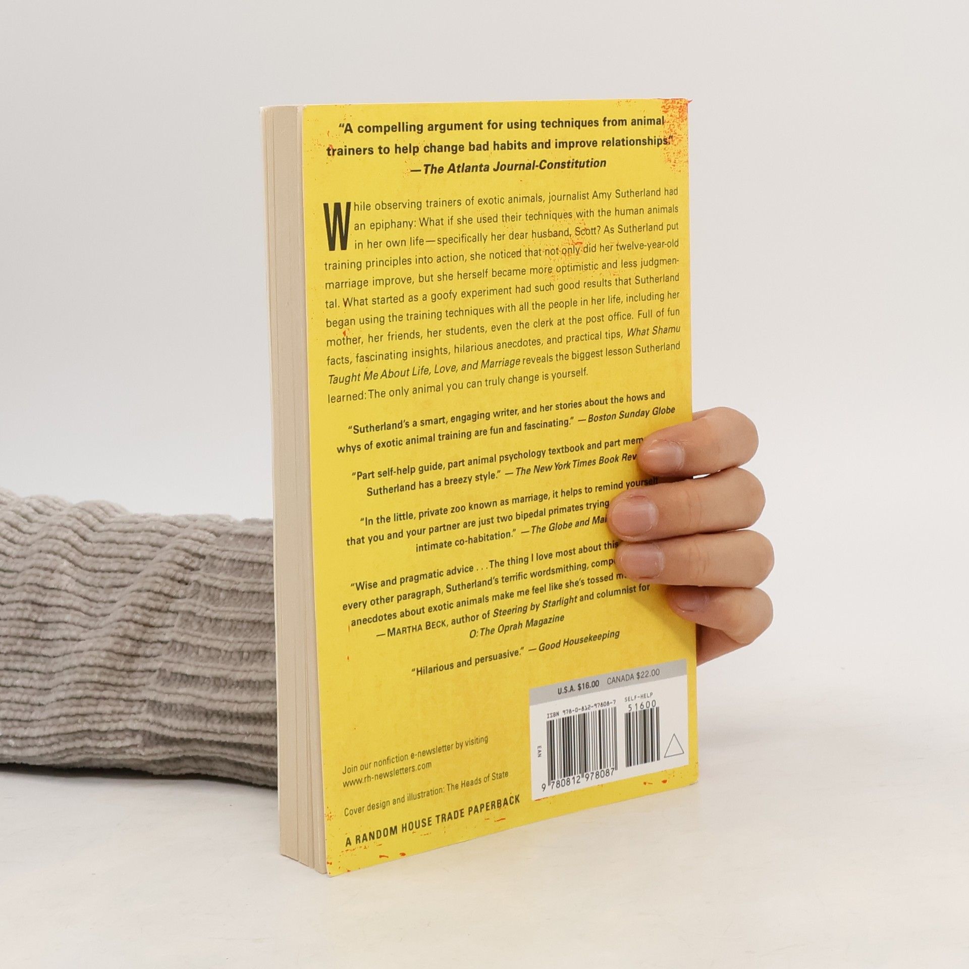 While observing trainers of exotic animals, journalist Amy Sutherland had an epiphany: What if she used their techniques with the human animals in her own life–specifically her dear husband, Scott? As Sutherland put training principles into action, she noticed that not only did her twelve-year-old marriage improve, but she herself became more optimistic and less judgmental. What started as a goofy experiment had such good results that Sutherland began using the training techniques with all the people in her life, including her mother, her friends, her students, even the clerk at the post office. Full of fun facts, fascinating insights, hilarious anecdotes, and practical tips, What Shamu Taught Me About Life, Love, and Marriage reveals the biggest lesson Sutherland learned: The only animal you can truly change is yourself.