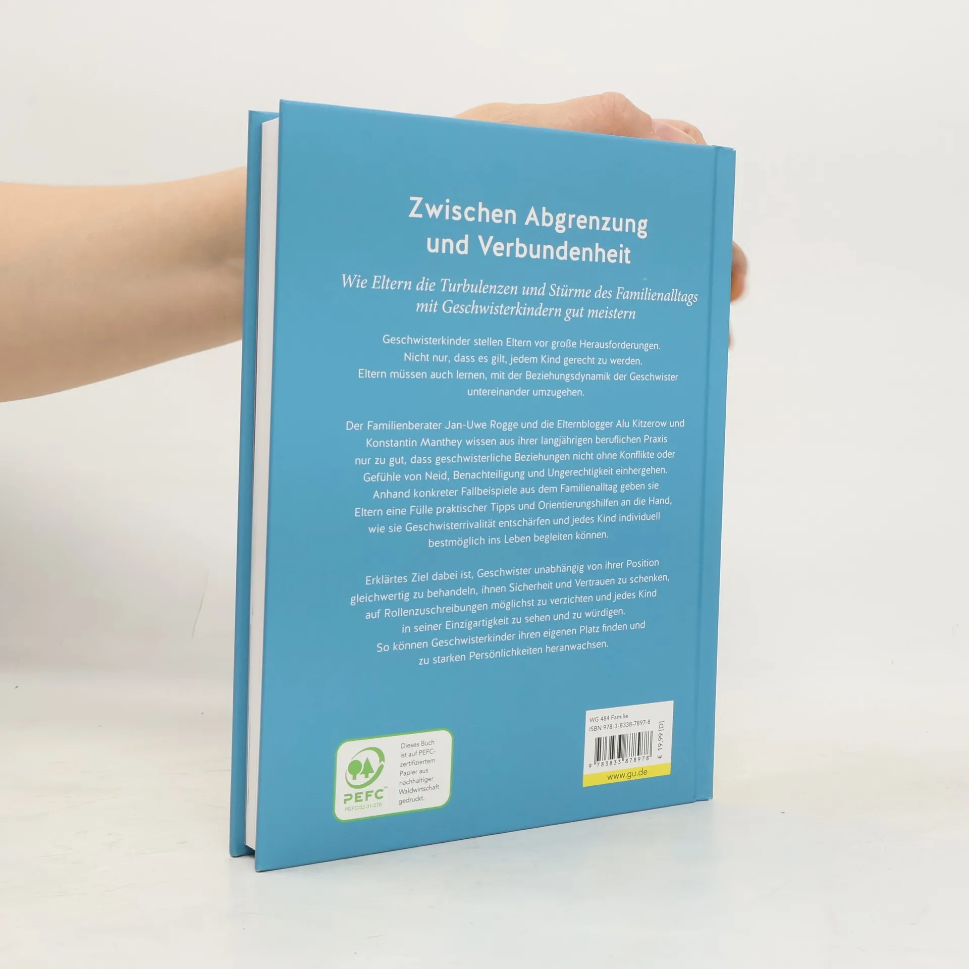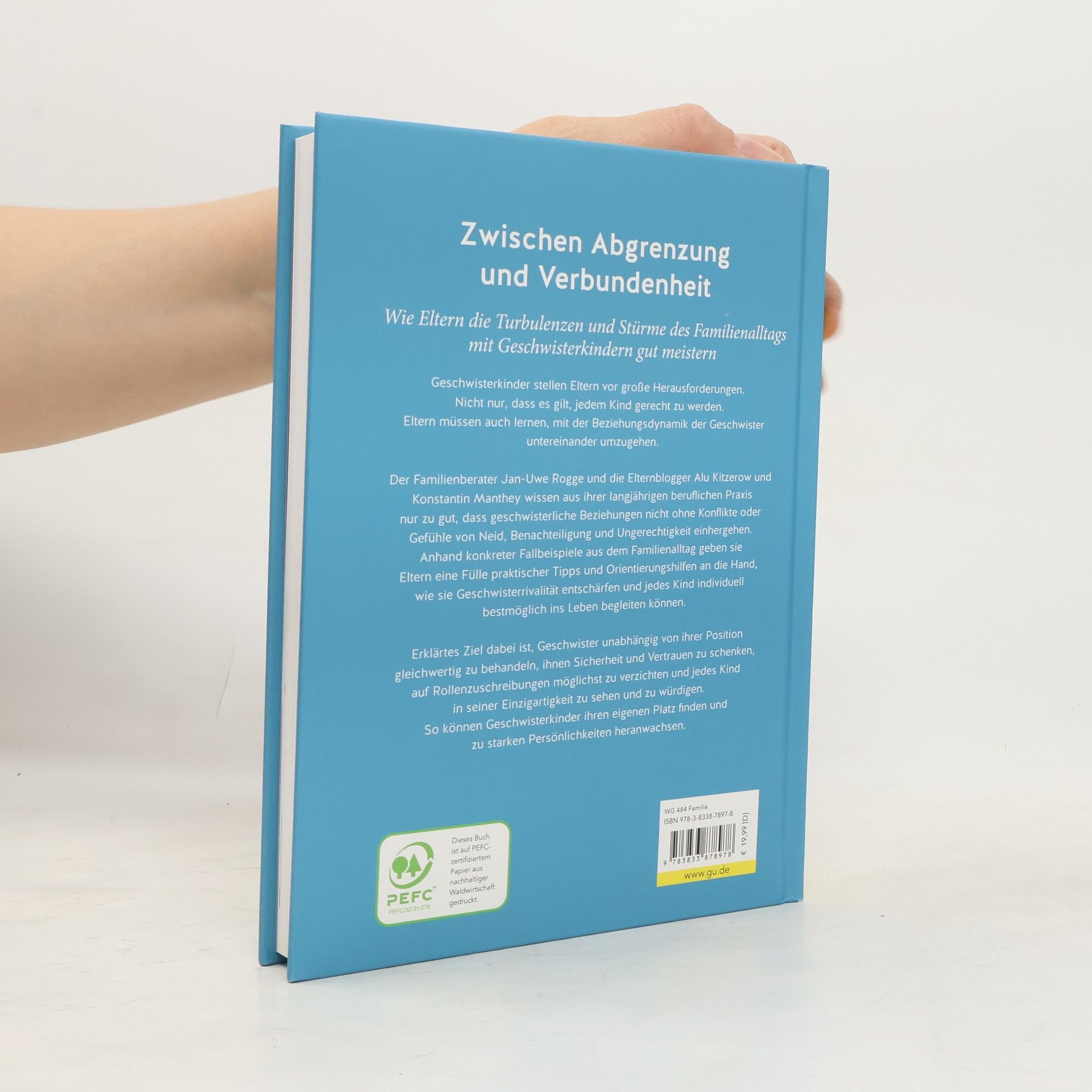 Jedem Kind in jeder Situation richtig begegnen! Eltern sind häufig unsicher, wie sie den Bedürfnissen ihrer Kinder gerecht werden können. Geschwister sind verschieden . Deshalb geht der Wunsch vieler Eltern, alle Kinder gleich zu behandeln, an der Realität vorbei. Man muss j edem Kind gerecht werden . Das schließt Streit und Rivalitäten nicht aus! Der bekannte Erziehungsexperte Jan-Uwe Rogge erklärt die Bedeutung der Geschwister füreinander und zeigt Wege aus – oft selbst gestellten – Fallen im Alltag. Mit-Autoren sind die beliebten Blogger-Eltern Alu und Konsti von großeköpfe. de , die für dieses Buch aus ihrem liebevoll-chaotischen Familienalltag mit drei Kindern erzählen. Das Buch will eine Oase sein, in der die Eltern Kraft finden, um ihre Kinder zu begleiten .