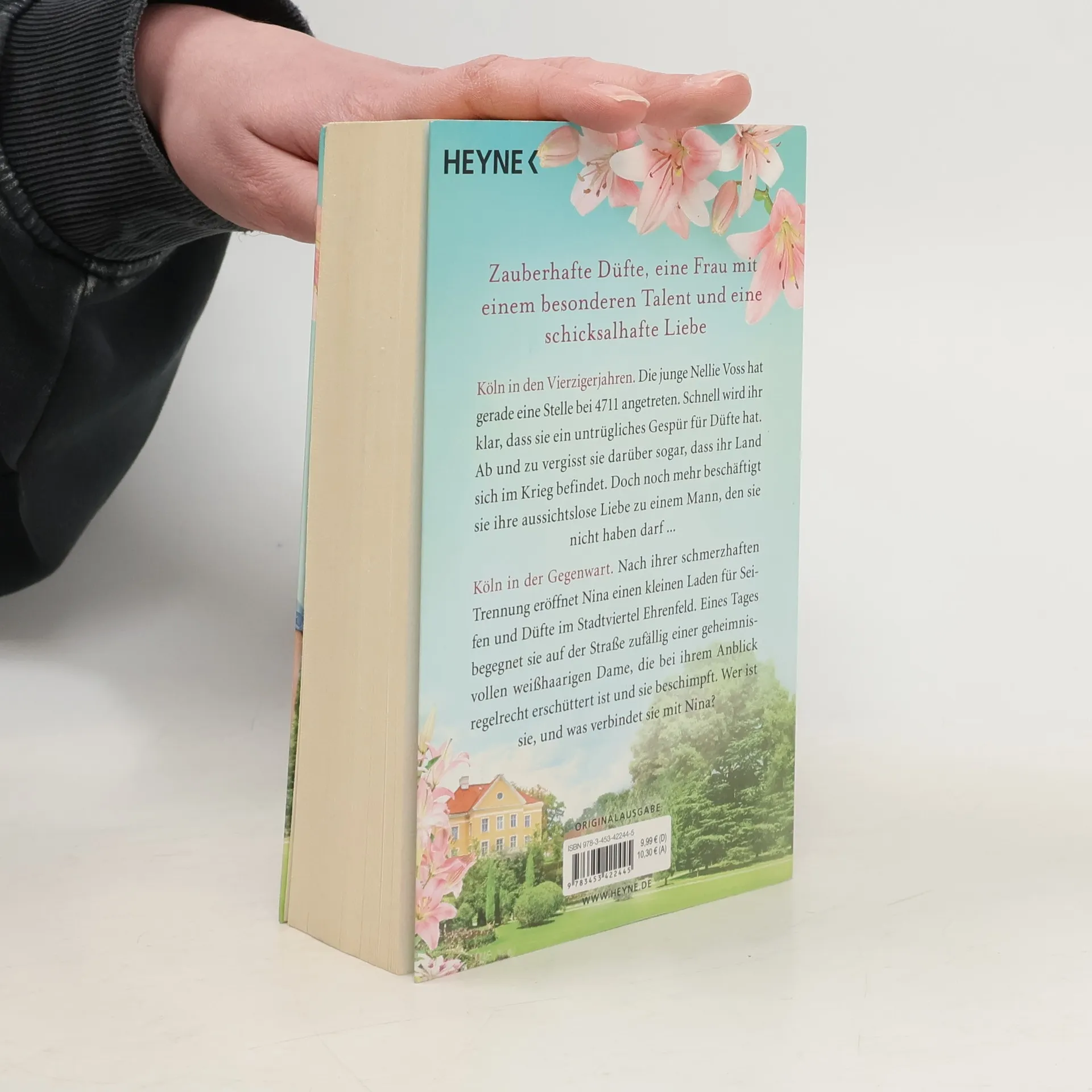Köln in den Vierzigerjahren. Die junge Nellie Voss hat gerade eine Stelle bei 4711 angetreten. Schnell wird ihr klar, dass sie ein untrügliches Gespür für Düfte hat. Ab und zu vergisst sie darüber sogar, dass ein schrecklicher Krieg tobt. Doch noch mehr beschäftigt sie ihre aussichtslose Liebe zu einem Mann, den sie nicht haben darf ... Köln in der Gegenwart: Nach ihrer schmerzhaften Trennung eröffnet Liv einen kleinen Laden für Seifen und Düfte im Stadtviertel Ehrenfeld. Eines Tages begegnet sie auf der Straße zufällig einer geheimnisvollen weißhaarigen Dame, die bei ihrem Anblick regelrecht erschüttert ist und sie beschimpft. Wer ist sie, und was verbindet sie mit Liv?