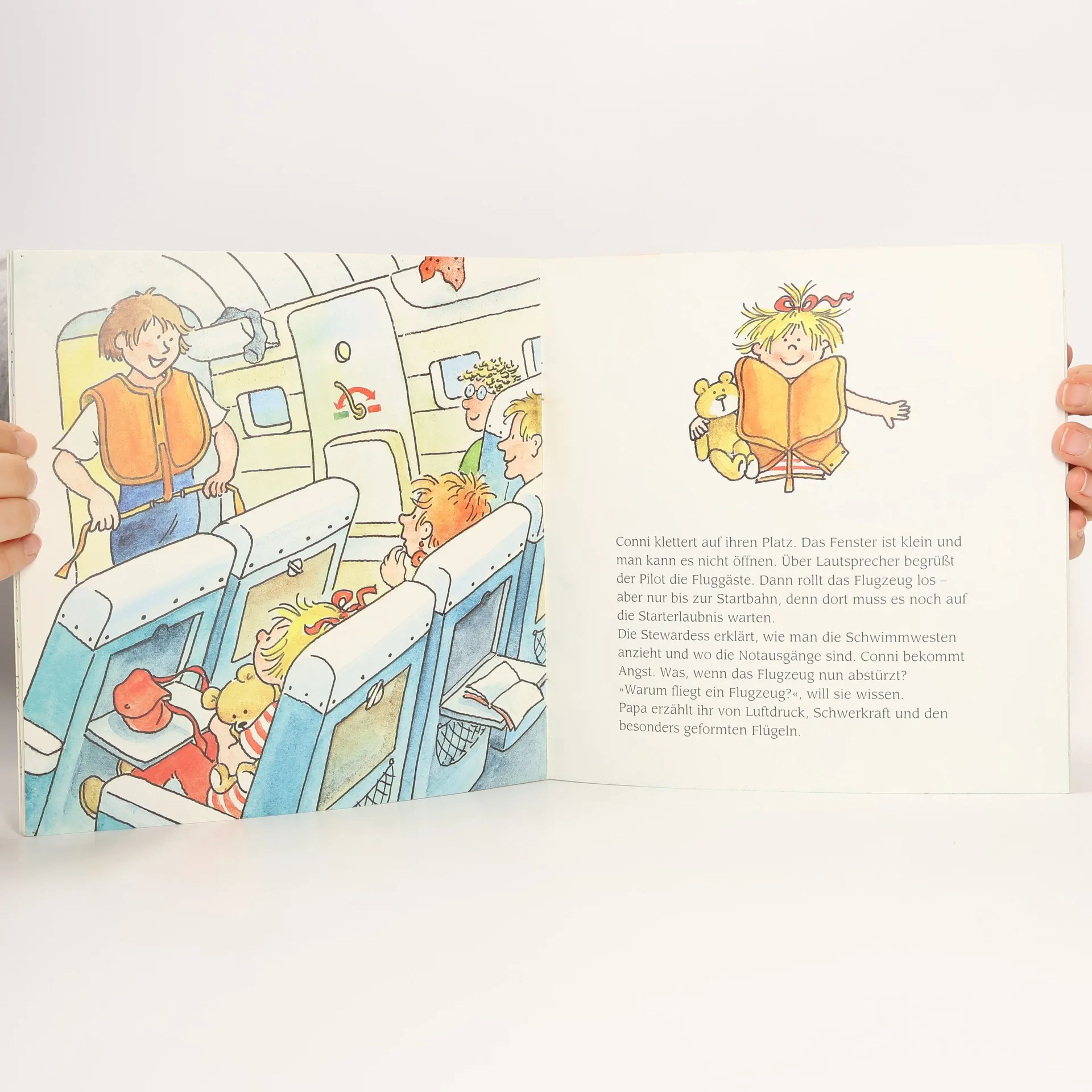 Conni ist aufgeregt: Sie macht mit ihren Eltern Urlaub im Süden. Diese Reise wird etwas Besonderes, denn Conni ist noch nie geflogen. Conni erfährt, was mit dem Gepäck passiert, sie isst hoch über den Wolken Spaghetti und sie lernt auch, was ein Luftloch ist. Fliegen ist so spannend, dass sich Conni jetzt schon auf den Rückflug freut!