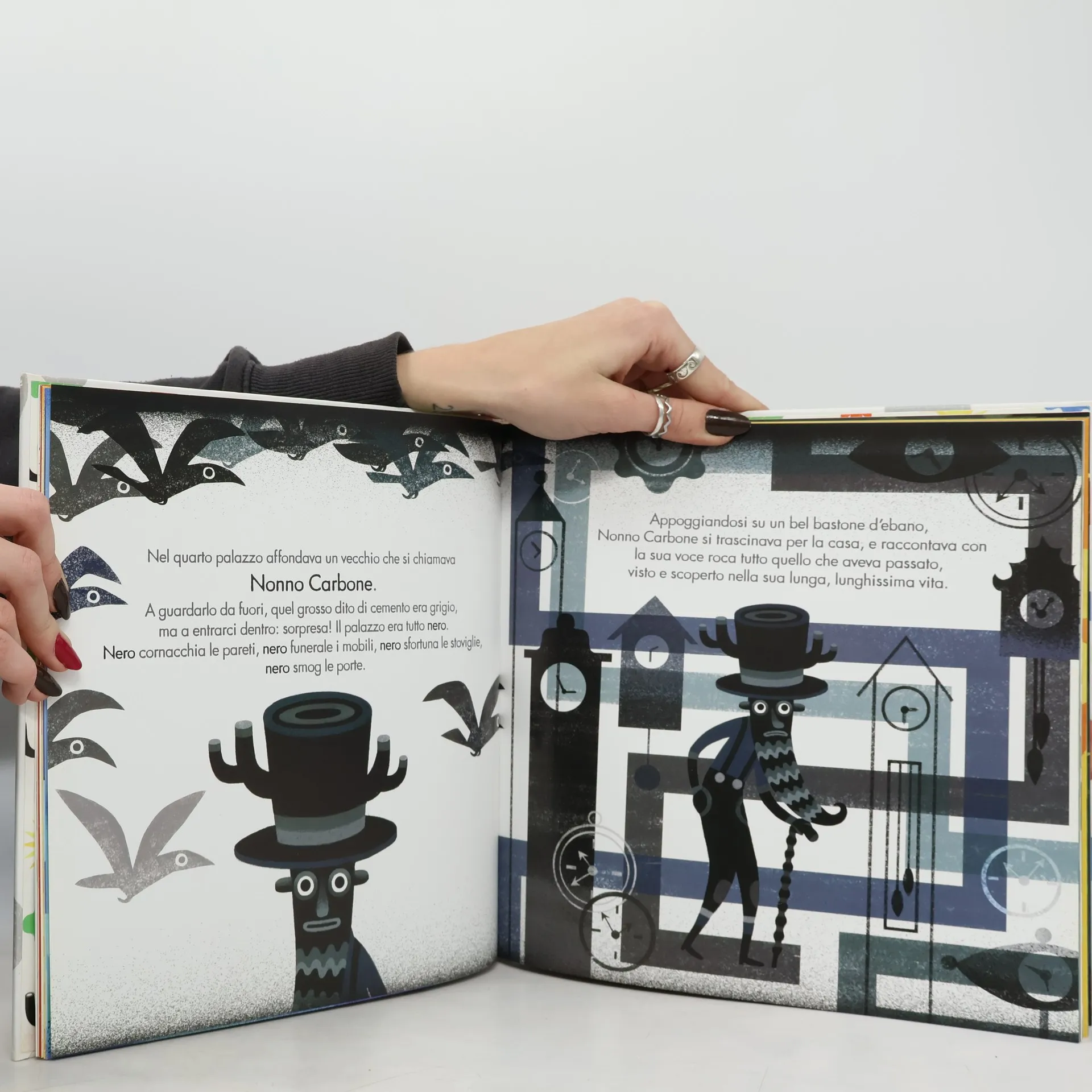 Senza sembra una città deserta, ma non è affatto così. In ciascuno dei cinque palazzi abita qualcuno e all'interno sono tutti colorati, ma di un colore soltanto. Il primo è tutto rosso, e ci abita Fuoco. Un ragazzo con un grandissimo cuore, sempre innamorato... ma non sa di chi perché nel suo palazzo non entra mai nessuno! Nel secondo abita una bambina di nome Pepita. Dentro è tutto giallo, e al centro di un immenso salone giallo taxi c'è una collina scintillante di monetine d'oro su cui Pepita si diverte a scivolare per tutto il giorno. Nel terzo, che all'interno è tutto blu, vive Blues. "Voglio essere libera!" canta, zigzagando con i pattini sul lago ghiacciato che fa da pavimento. Nel quarto, tutto nero, abita Nonno Carbone. Trascorre le sue giornate raccontando tutto quello che ha imparato nel corso della sua lunghissima vita. A chi racconta? A nessuno, perché nessuno gli fa compagnia... Nel quinto, che dentro è tutto verde, abita Mister Green, che se ne sta sdraiato completamente nudo sopra "una moquette di prato bagnato" a fissare il soffitto verde muschio. E Fuoco, Pepita, Blues, Nonno Carbone e Mister Green passano così le giornate, chiusi nei loro palazzi, convinti che l'unico colore al mondo sia quello che conoscono, mentre a Senza continua a non succedere niente. "Ma poiché la vita è sempre più matta di noi e si diverte a farci degli scherzi, un giorno proprio lei in persona, la Vita, decise di mandare nell'unica strada di Senza il vento più forte che avesse mai soffiato in tutta la storia del mondo" e costrinse i cinque a uscire finalmente dai loro palazzi e a incontrarsi