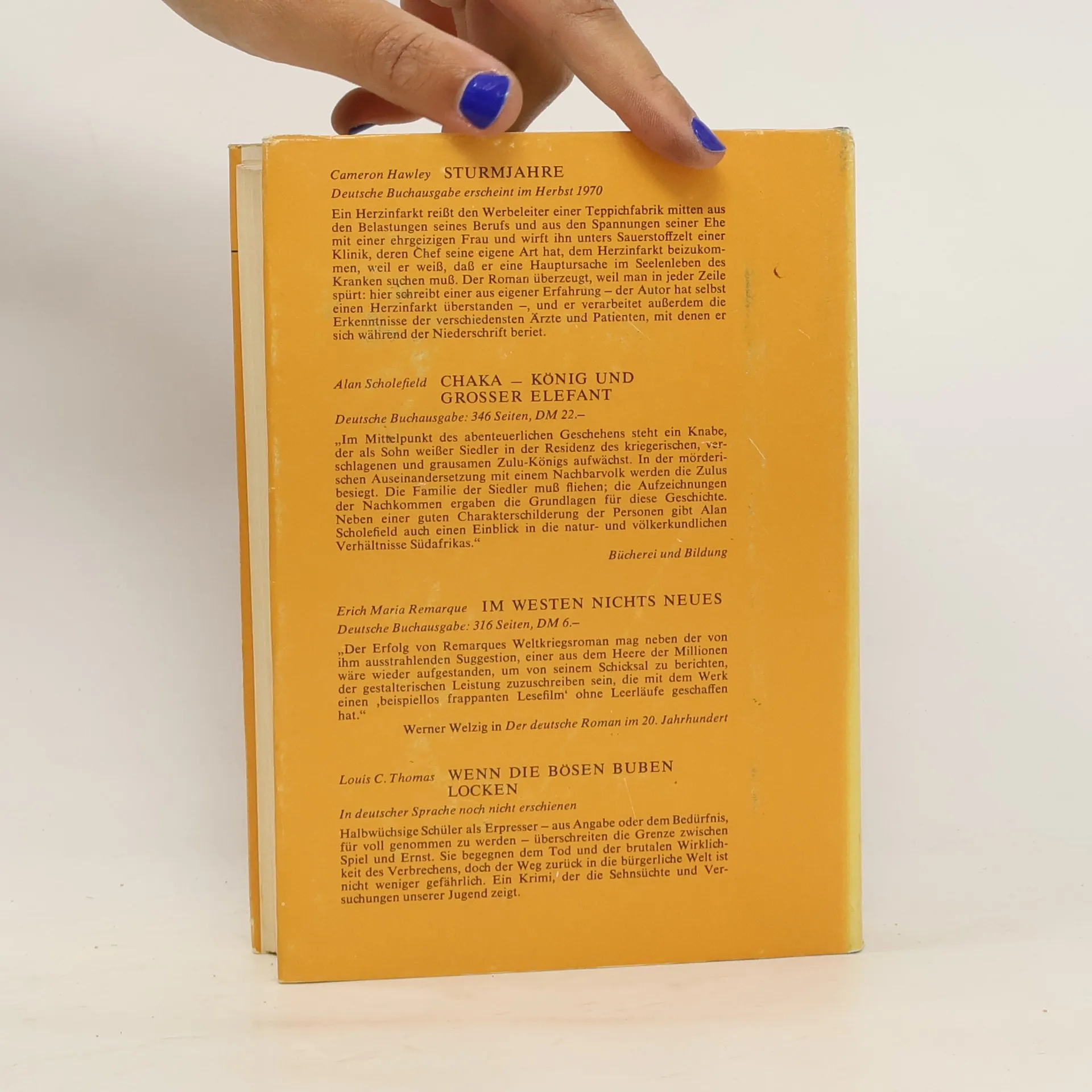 Reader's Digest Auswahlbücher. Sturmjahre. Chaka-König und Grosser Elefant. Im Westen nichts neues. Wenn die Bösen buben Locken, Erich Maria Remarque, Alan Scholefield, Louis C. Thomas, Cameron Hawley