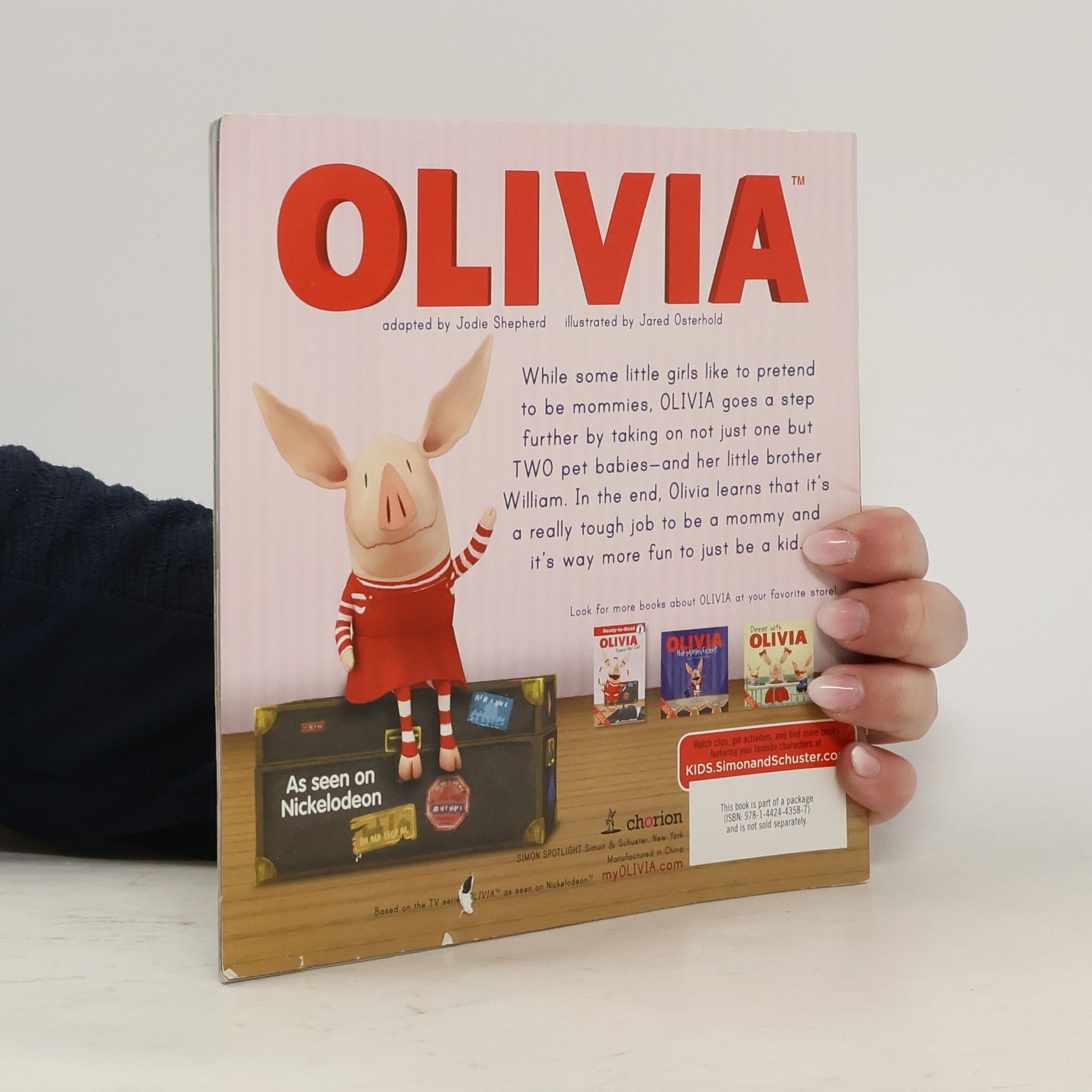 This carry-along boxed set includes six favorite Olivia stories at an incredible value! Now wherever Olivia fans go, they can take their favorite books with them! This carry-along boxed set has a plastic handle and a Velcro closure, and provides endless entertainment with six of Olivia’s best 8x8 storybook adventures: Dinner with OLIVIA, OLIVIA and the Babies, OLIVIA and the School Carnival, OLIVIA Opens a Lemonade Stand, OLIVIA Cooks Up a Surprise, and OLIVIA Leads a Parade. ©2012 SLP. OLIVIA™ and © Ian Falconer.
