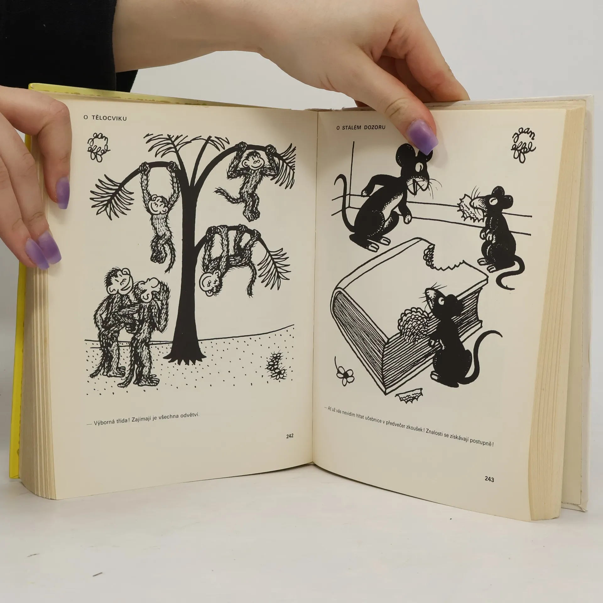 Rozmarné kresby s vtipným doprovodem vytvářejí moderní bajku 20. století.