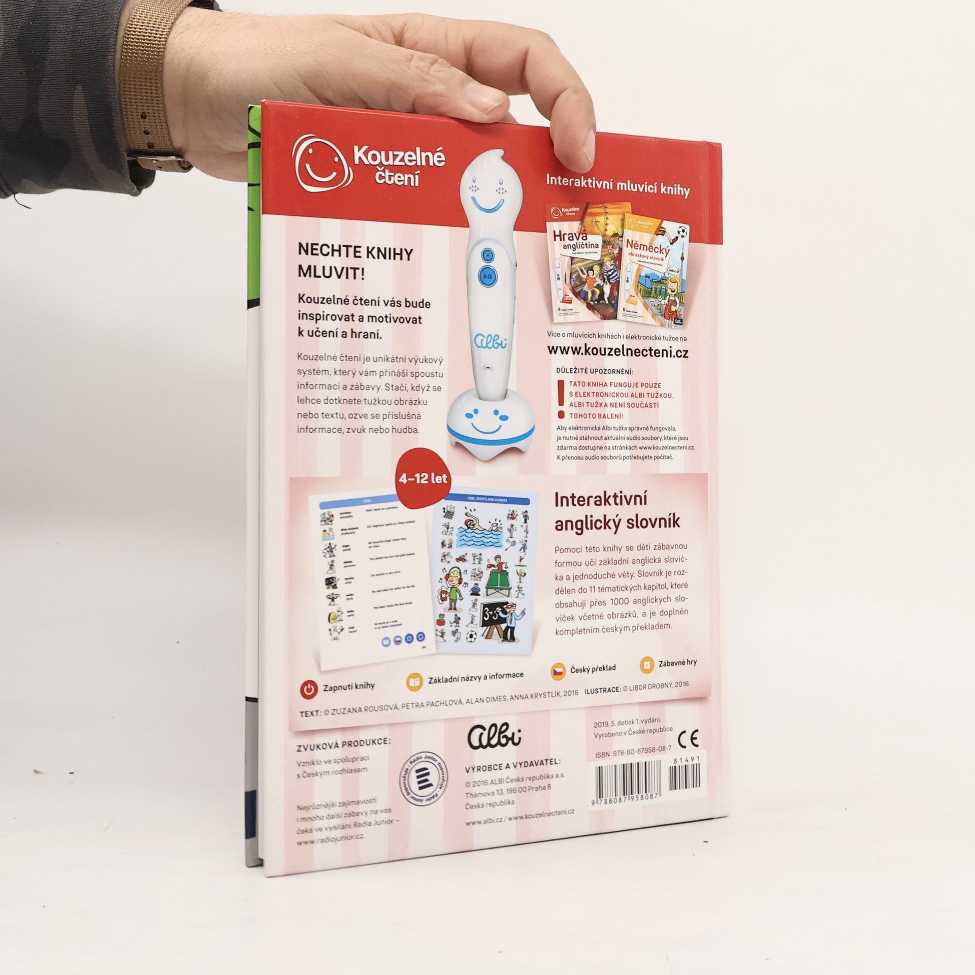 Interaktivní anglický slovník, s jehož pomocí se děti zábavnou formou učí anglická slovička a jednoduché věty. Slovník je rozdělen do 11 tematických kapitol a obsahuje přes tisíc anglických slovíček včetně obrázků. Kniha funguje pouze s elektronickou Albi tužkou (není součástí knihy, prodává se samostatně). Vzniklo ve spolupráci s Českým rozhlasem. Namluveno rodilými mluvčími. Dotisky roku 2017, 2018 a 2019.