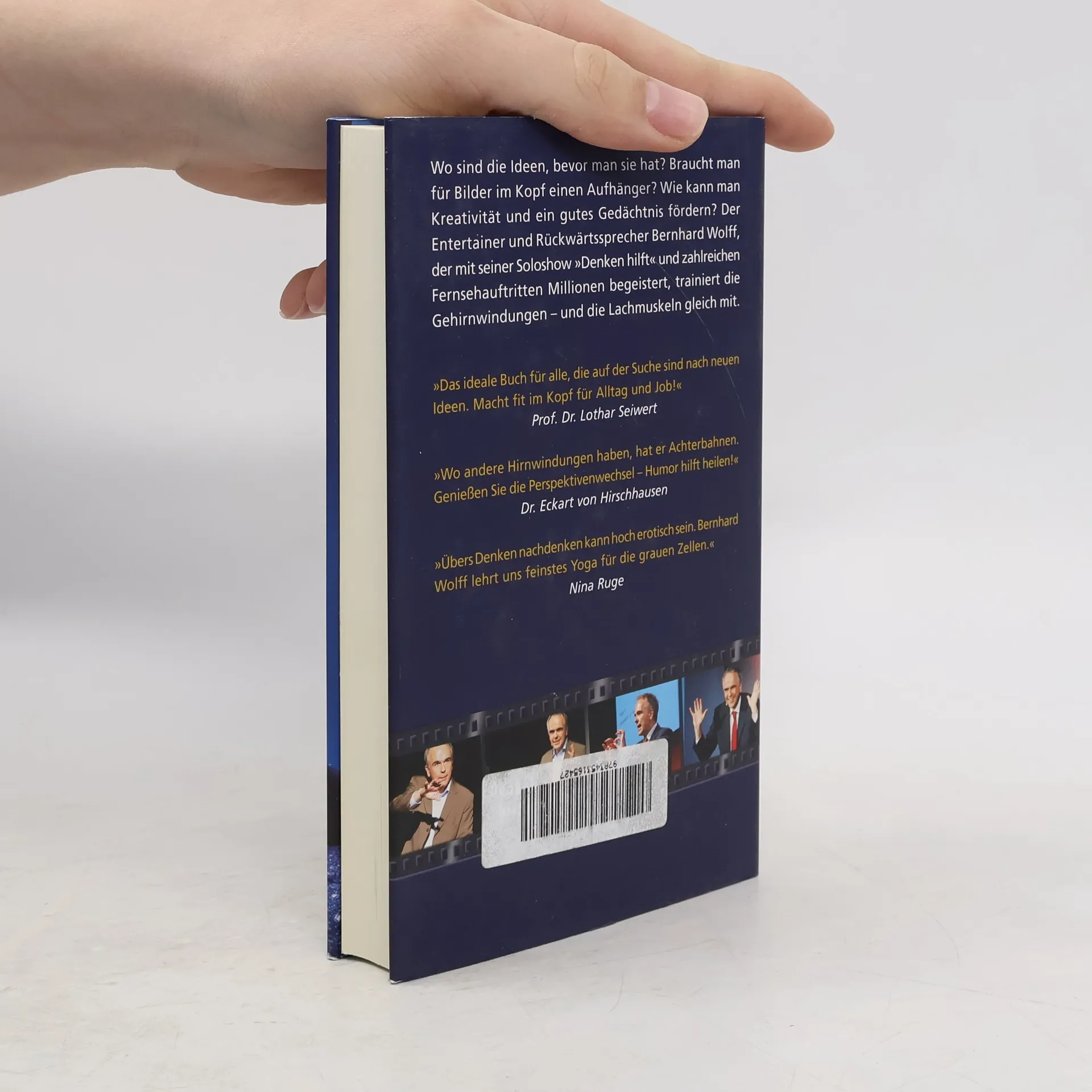Jetzt gibt's Farbe für die grauen Zellen! Wo sind die Ideen, bevor man sie hat? Braucht man für Bilder im Kopf einen Aufhänger? Wie kann man Kreativität und ein gutes Gedächtnis fördern? Der "Enterbrainer" Bernhard Wolff, der mit seiner Soloshow "Denken hilft" und zahlreichen Fernsehauftritten Millionen begeistert, trainiert die Gehirnwindungen- und die Lachmuskeln gleich mit. Bekannt wurde Bernhard Wolff, als er bei "stern TV" und in der "RTL-Grips-Show" sogar Günther Jauch mit seinen Fähigkeiten verblüffte
