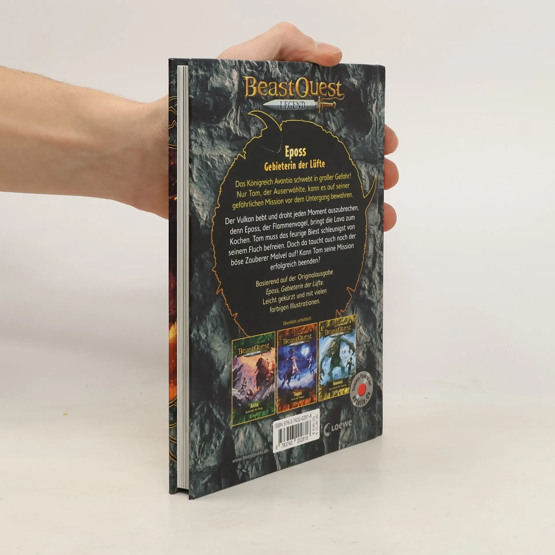 Das Buch ist bei deiner Buchhandlung vor Ort und bei vielen Online-Buchshops erhältlich! Der Vulkan bebt und droht jeden Moment auszubrechen, denn Eposs, der Flammenvogel, bringt die Lava zum Kochen. Tom muss das feurige Biest schleunigst von seinem Fluch befreien. Doch da taucht auch noch der böse Zauberer Malvel auf! Kann Tom seine Mission erfolgreich beenden? Das Königreich Avantia schwebt in großer Gefahr! Nur Tom, der Auserwählte, kann es auf seiner gefährlichen Mission vor dem Untergang bewahren. Spannende Missionen , furchterregende Biester und actionreiche Fantasy ! Die beliebte Kinderbuch-Reihe von Bestsellerautor Adam Blade mit coolen farbigen Illustrationen von Helge Vogt . Fesselnde Abenteuer in einem optimalen Text-Bild-Verhältnis. Die leicht gekürzten Texte lassen viel Raum für viele bunte Bilder. Für Jungs ab 8 Jahren . Basierend auf der Originalausgabe Beast Quest - Eposs, Gebieterin der Lüfte . Leicht gekürzt und mit vielen farbigen Illustrationen. Alle Bände der Beast Quest Legend -Reihe sind bei Antolin. de gelistet.