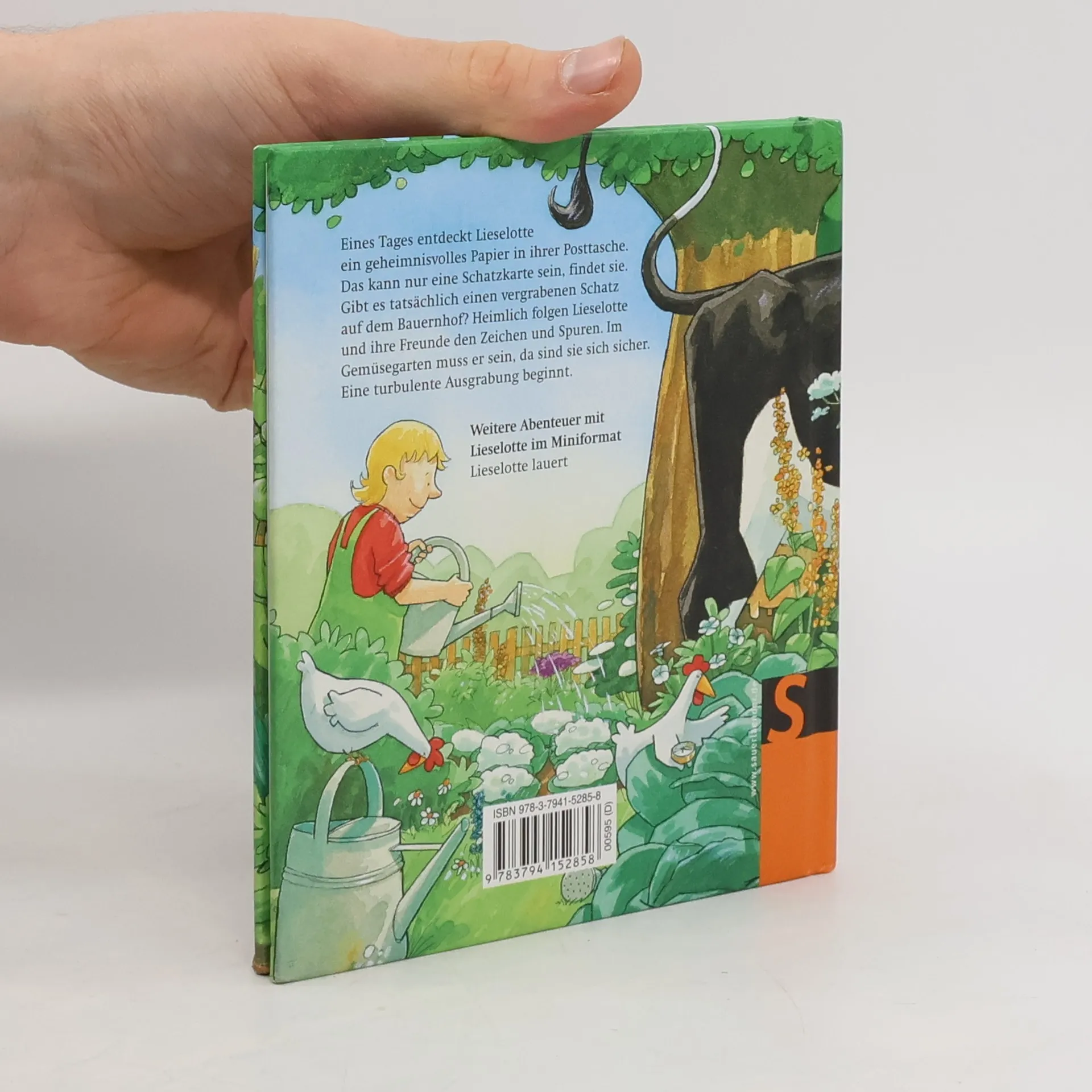 Eines Tages entdeckt Lieselotte ein geheimnisvolles Papier in ihrer Posttasche. Das kann nur eine Schatzkarte sein, findet sie. Gibt es tatsächlich einen vergrabenen Schatz auf dem Bauernhof? Heimlich folgen Lieselotte und ihre Freunde den Zeichen und Spuren. Im Gemüsegarten muss der Schatz sein, da sind sie sich sicher. Eine abenteuerliche Ausgrabung beginnt ...