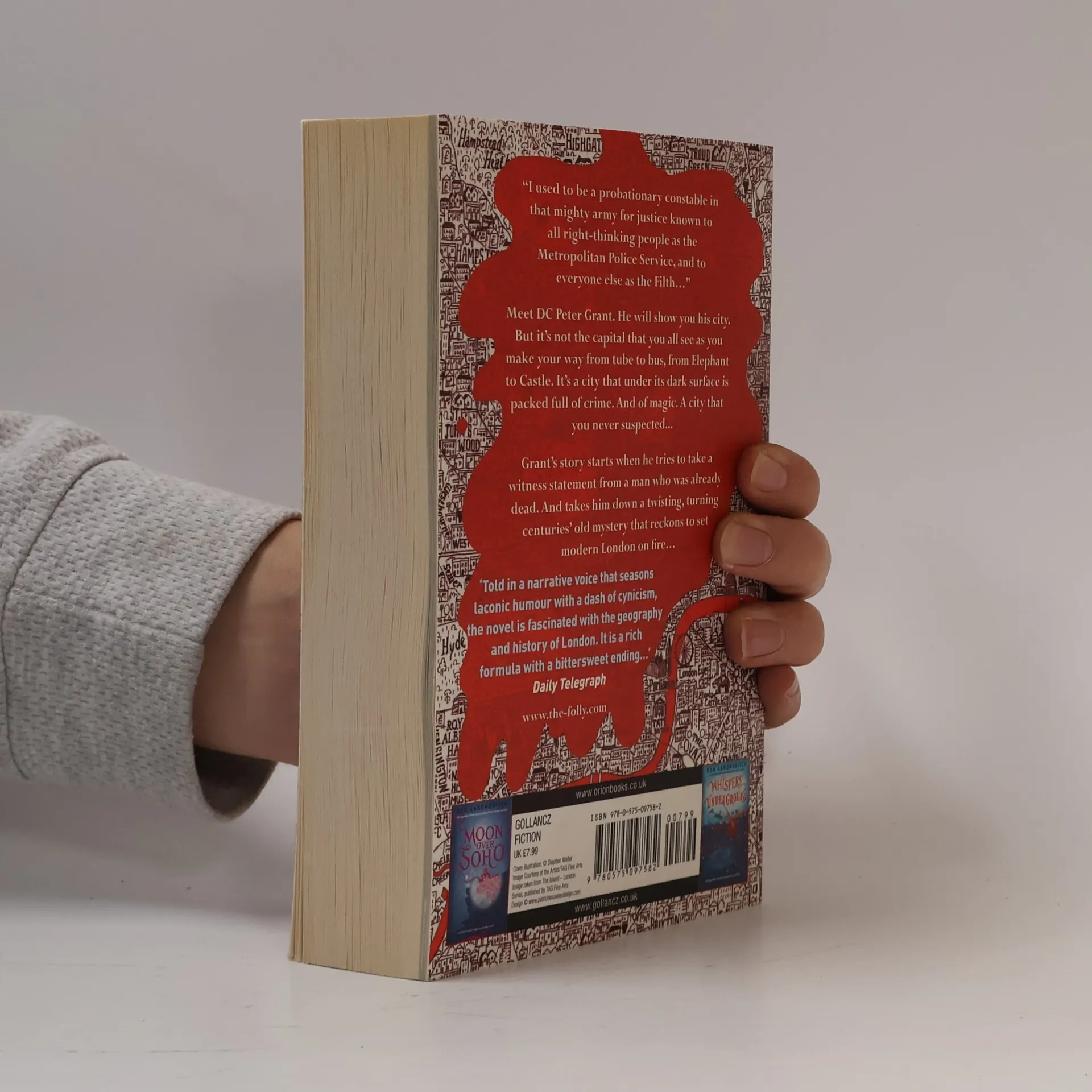 My name is Peter Grant and until January I was just probationary constable in that mighty army for justice known to all right-thinking people as the Metropolitan Police Service (and as the Filth to everybody else) ... One night, in pursuance of a murder inquiry, I tried to take a witness statement from someone who was dead but disturbingly voluable, bringing me to the attention of Inspector Nightingale, the last wizard in England. Now I'm a Detective Constable and a trainee wizard, the first apprentice in fifty years, and my world has become somewhat more complicated: nests of vampires in Purley, negotiating a truce between the warring god and goddess of the Thames, and digging up graves in Covent Garden ...and there's something festering at the heart of the city I love, a malicious vengeful spirit that takes ordinary Londoners and twists them into grotesque mannequins to act out its drama of violence and despair. The spirit of riot and rebellion has awakened in the city, and it's falling to me to bring order out of chaos - or die trying.