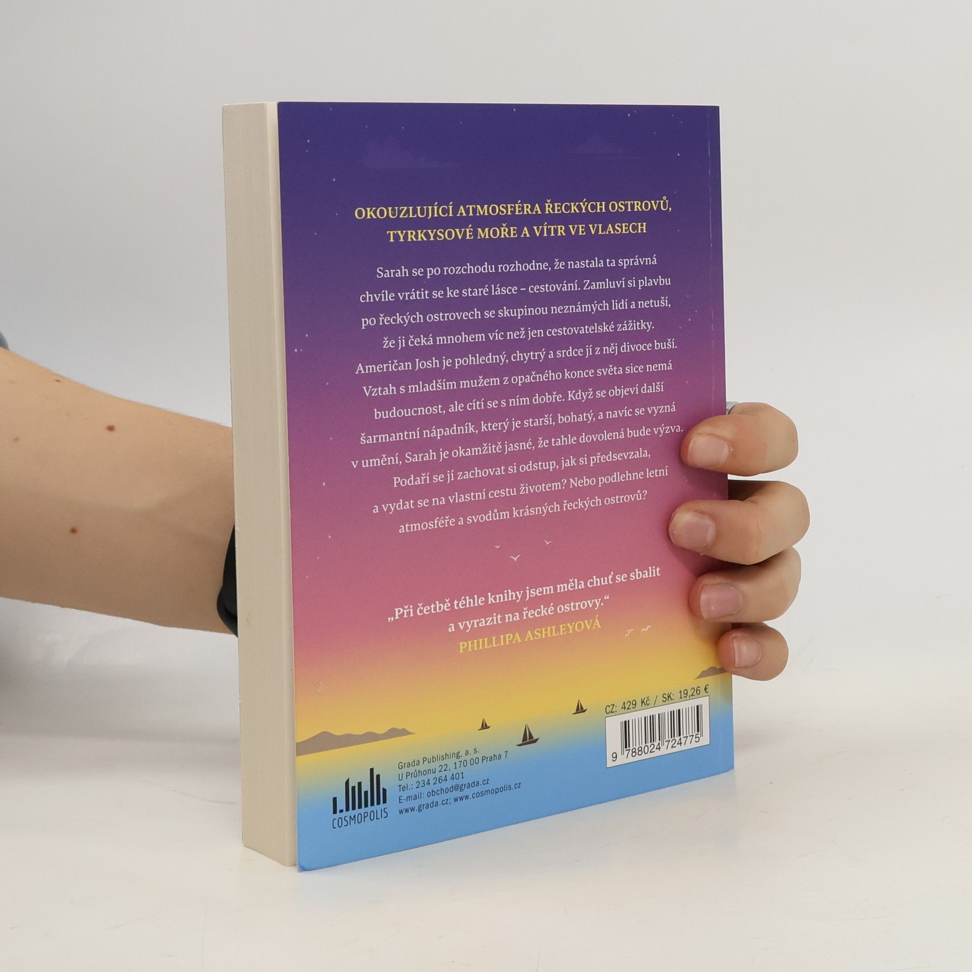 Sarah se po rozchodu rozhodne, že nastala ta správná chvíle vrátit se ke staré lásce – cestování. Zamluví si plavbu po řeckých ostrovech se skupinou neznámých lidí a netuší, že ji čeká mnohem víc než jen cestovatelské zážitky. Američan Josh je pohledný, chytrý a srdce jí z něj divoce buší. Vztah s mladším mužem z opačného konce světa sice nemá budoucnost, ale cítí se s ním dobře. Když se objeví další šarmantní nápadník, který je starší, bohatý, a navíc se vyzná v umění, Sarah je okamžitě jasné, že tahle dovolená bude výzva. Podaří se jí zachovat si odstup, jak si předsevzala, a vydat se na vlastní cestu životem? Nebo podlehne letní atmosféře a svodům krásných řeckých ostrovů?