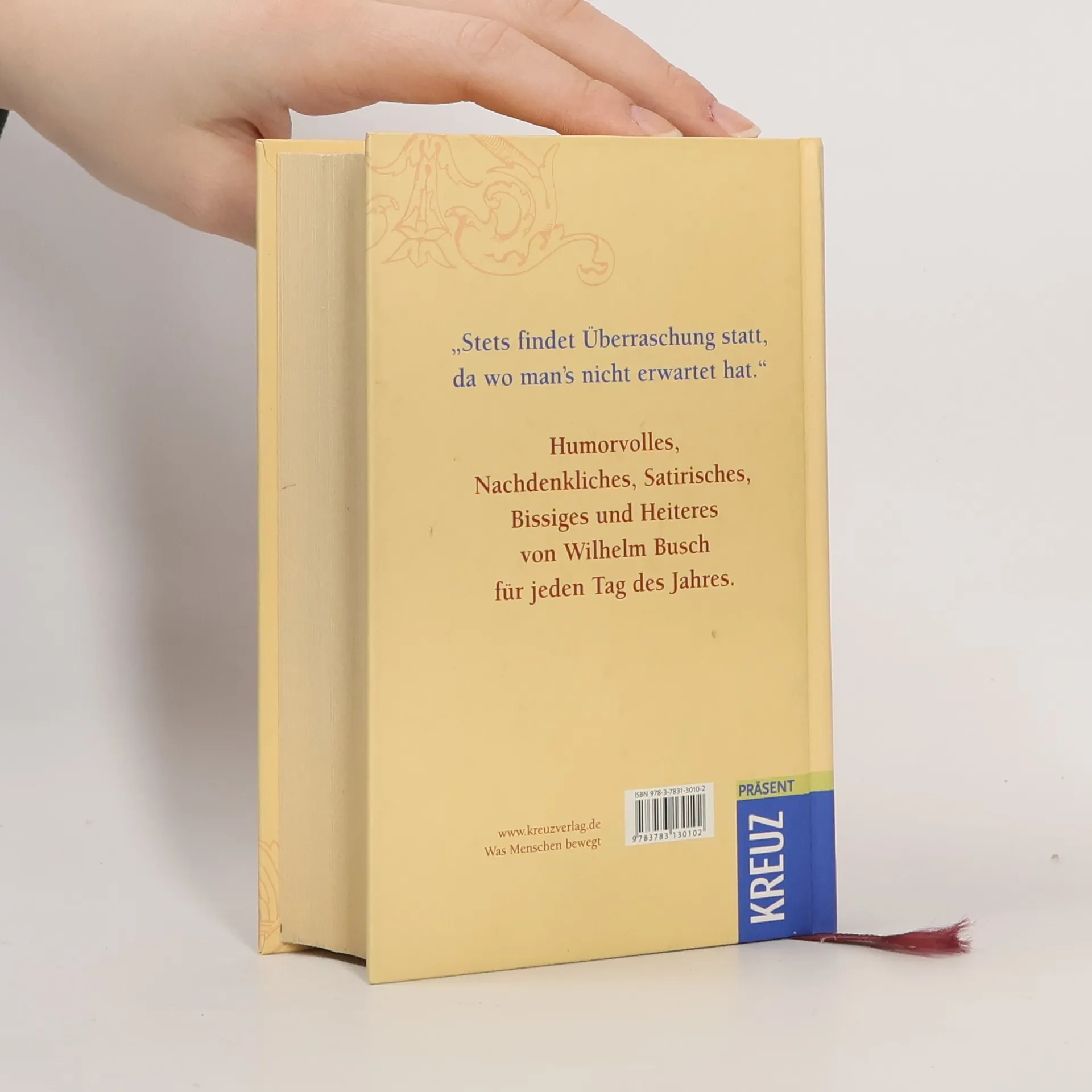 Wer kennt sie nicht, seine 'Helden'? Max und Moritz, Die fromme Helene, Fipps, der Affe oder Hans Huckebein, der Unglücksrabe – ihre Geschichten sind bekannt, und manches wurde zum geflügelten Wort: 'Dieses war der erste Streich …'. Für jeden Tag des Jahres einen pfiffigen oder nachdenklichen Satz oder ein Gedicht dieses bedeutendsten humoristischen Dichter Deutschlands mit seinen Illustrationen. Zum Nachdenken, Lachen oder Schmunzeln. Am Telefon, auf dem Nachtschränkchen oder auf dem Küchentisch, in großer Schrift – ein immer währender Begleiter durch das Jahr, mit Leseband ausgestattet. Wie schrieb Wilhelm Busch: 'Solange Herz und Auge offen, um sich am Schönen zu erfreun, solange darf man freudig hoffen, wird auch die Welt vorhanden sein.'