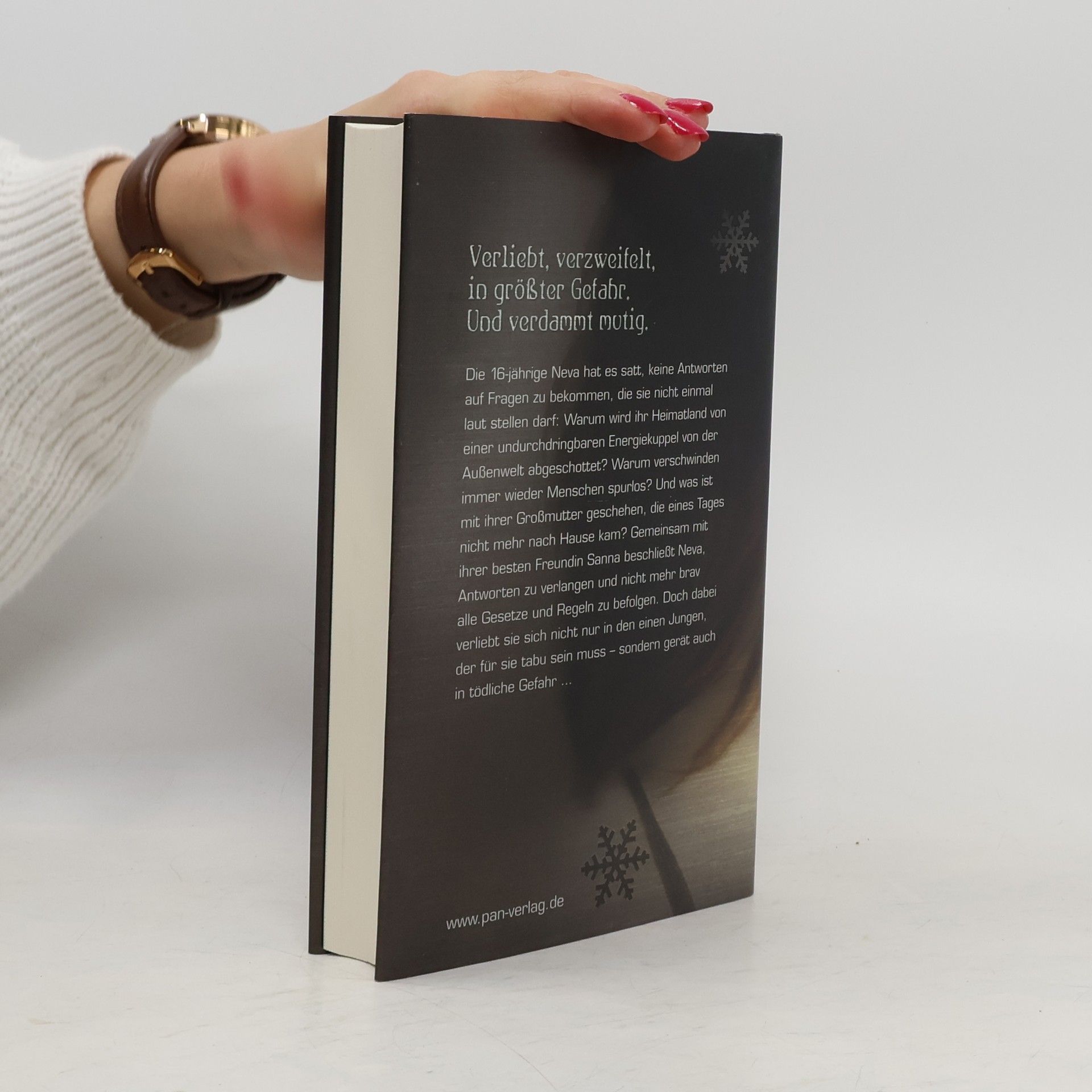Die 16-jährige Neva hat es satt, keine Antworten auf Fragen zu bekommen, die sie nicht einmal laut stellen darf: Warum wird ihr Heimatland von einer undurchdringbaren Energiekuppel von der Außenwelt abgeschottet? Warum verschwinden immer wieder Menschen spurlos? Und was ist mit ihrer Großmutter geschehen, die eines Tages nicht mehr nach Hause kam? Gemeinsam mit ihrer besten Freundin Sanna beschließt Neva, Antworten zu verlangen und nicht mehr brav alle Gesetze und Regeln zu befolgen. Doch dabei verliebt sie sich nicht nur in den einen Jungen, der für sie tabu sein muss – sondern gerät auch in tödliche Gefahr …