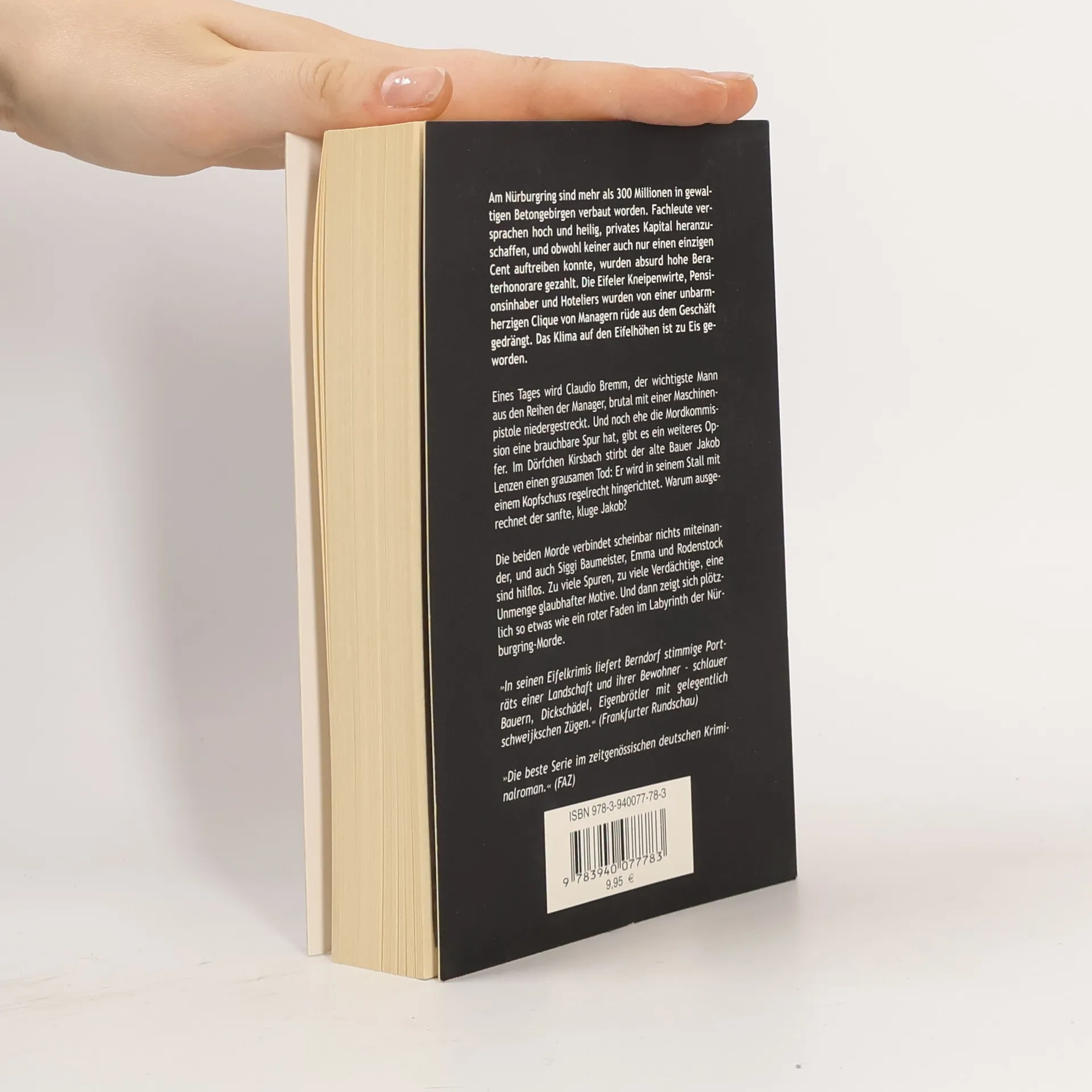 Am Nürburgring sind mehr als 300 Millionen in gewaltigen Betongebirgen verbaut worden, die angeblich schnellste Achterbahn der Welt kostete mehr als zwölf Millionen Euro und ist nicht ein einziges Mal gefahren. Fachleute versprachen hoch und heilig, privates Kapital heranzuschaffen, und obwohl keiner auch nur einen einzigen Cent auftreiben konnte, wurden absurd hohe Beraterhonorare gezahlt. Die Furcht der Eifeler Kneipenwirte, Pensionsinhaber und Hoteliers scheint berechtigt: Sie wurden von einer unbarmherzigen Clique von Managern rüde aus dem Geschäft gedrängt. Das Klima auf den Eifelhöhen ist zu Eis geworden. Niemand traut dem anderen, und selbst alte Freunde begegnen einander mit Misstrauen. Eines Tages wird Claudio Bremm ermordet, der wichtigste Mann aus den Reihen der Manager, der härteste der harten Typen, der kälteste. Jemand streckt ihn brutal mit einer Maschinenpistole nieder, jemand, der ihn abgrundtief gehasst hat, jemand, der gesagt hat: Der muss weg! Noch ehe die Mordkommission die Spuren im Wald sichern kann, stirbt ein zweiter Mann. Im Dörfchen Kirsbach, unweit der ältesten und bekanntesten Rennstrecke der Welt, stirbt der alte Bauer Jakob Lenzen einen grausamen Tod: Er wird mit einem Kopfschuss aus einer großkalibrigen Waffe in seinem Stall hingerichtet. Warum ausgerechnet der sanfte, kluge Jakob? Zunächst kann niemand die Morde aufklären, die scheinbar nichts miteinander verbindet. Auch Siggi Baumeister, Emma und Rodenstock sind hilflos. Zu viele Spuren, zu viele Verdächtige, eine Unmenge glaubhafter Motive. Schließlich wird die Leiche einer jungen Frau aufgefunden. Bei Regen und Eiseskälte wurde sie aus dem Auto gezerrt, erschossen, liegengelassen. Und zum ersten Mal zeigt sich so etwas wie ein roter Faden im Labyrinth der Nürburgring-Morde …