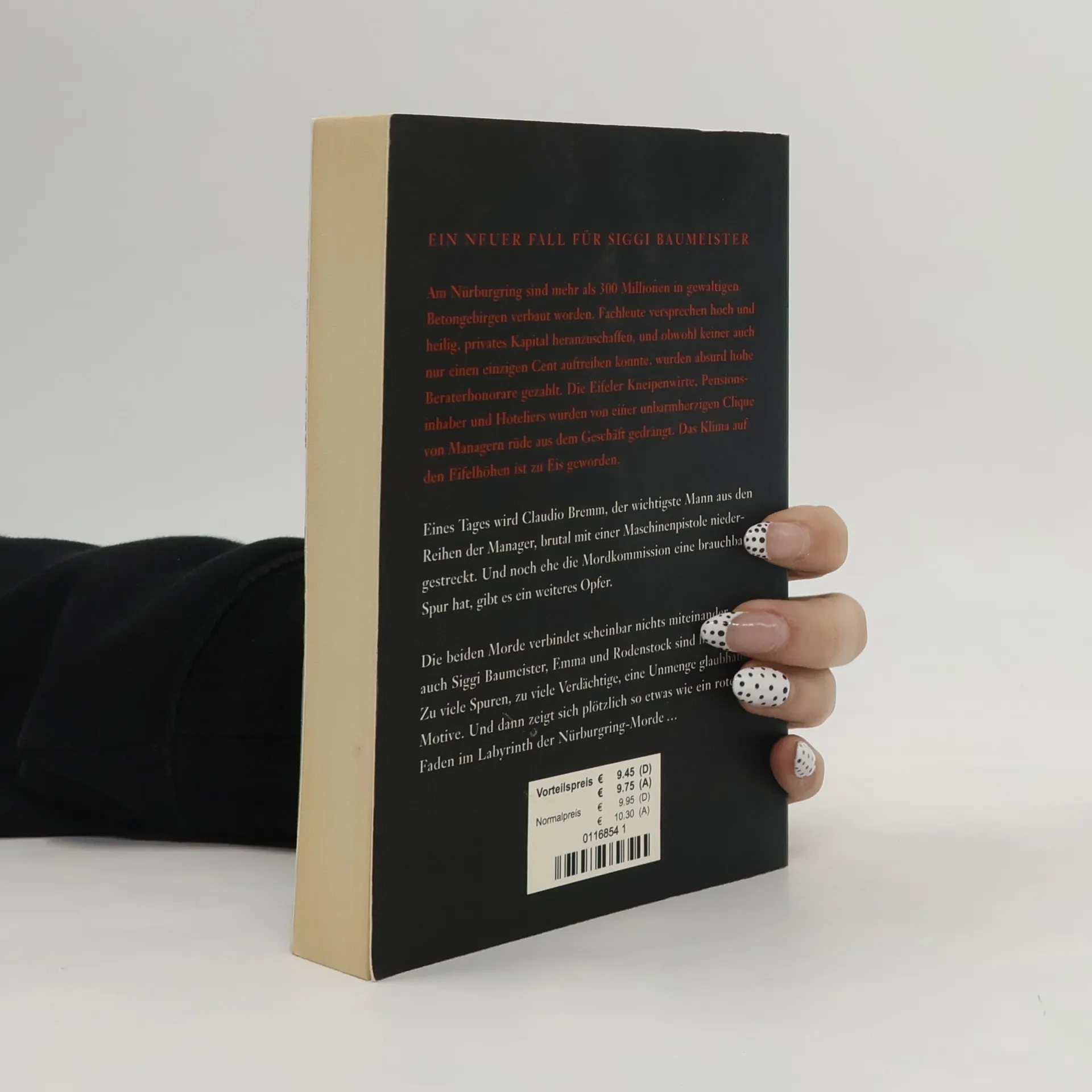 Am Nürburgring wurden über 300 Millionen Euro in massive Betonstrukturen investiert, und die teuerste Achterbahn der Welt, die mehr als zwölf Millionen Euro kostete, ist nie gefahren. Trotz der Versprechen von Fachleuten, privates Kapital zu akquirieren, blieben diese Bemühungen erfolglos, während hohe Beraterhonorare gezahlt wurden. Die Besorgnis der Eifeler Gastronomen und Hoteliers ist berechtigt, da sie von einer rücksichtslosen Gruppe von Managern aus dem Geschäft gedrängt wurden. Misstrauen und Kälte prägen das Klima in der Region, selbst alte Freundschaften sind betroffen. Dann wird Claudio Bremm, der härteste Manager, brutal ermordet. Jemand mit tiefem Hass auf ihn hat ihn mit einer Maschinenpistole erschossen. Bevor die Mordkommission die Ermittlungen aufnehmen kann, stirbt ein weiterer Mann: der alte Bauer Jakob Lenzen, der in seinem Stall mit einem Kopfschuss hingerichtet wird. Warum wurde gerade er zum Ziel? Die Ermittlungen gestalten sich schwierig, da die Morde zunächst keine erkennbaren Verbindungen aufweisen. Siggi Baumeister, Emma und Rodenstock sind ratlos angesichts der Vielzahl an Verdächtigen und Motiven. Schließlich wird die Leiche einer jungen Frau entdeckt, die unter grausamen Bedingungen ermordet wurde. Dies bringt einen ersten Anhaltspunkt in das undurchsichtige Geflecht der Nürburgring-Morde.