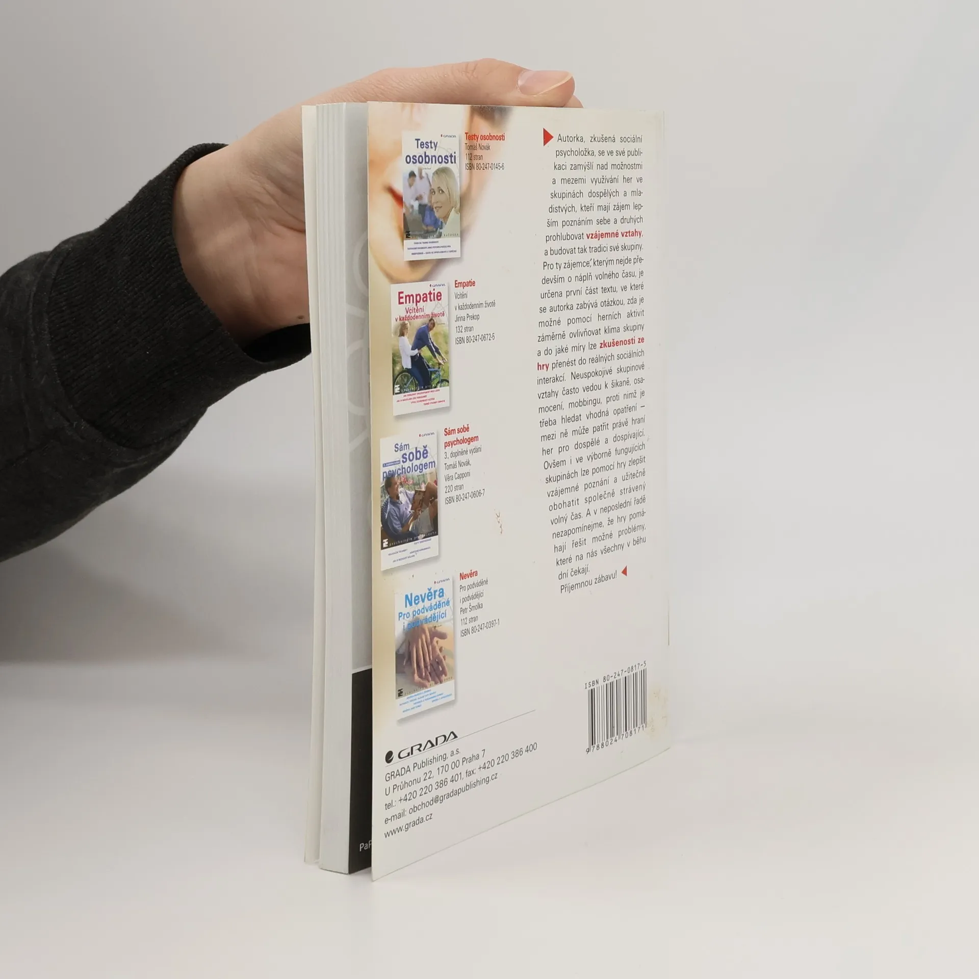 Publikace naší přední sociální psycholožky prezentuje hry, kterých lze využít k výcviku a rozvoji sociálních dovedností. Kniha je koncipována jako sborník interakčních her a her pro rozvoj skupiny, úvodní kapitola poskytuje nezbytný teoretický vhled do dané tematiky, v závěru autorka vybízí k reflexi herních aktivit ve skupině. Kniha je určena skupinám přátel, studentům různých oborů společenských věd, učitelům a vedoucím zájmových skupin, ti všichni v ní naleznou inspiraci pro obohacení společně stráveného času, kultivaci mezilidských vztahů a prohloubení vzájemného poznání.