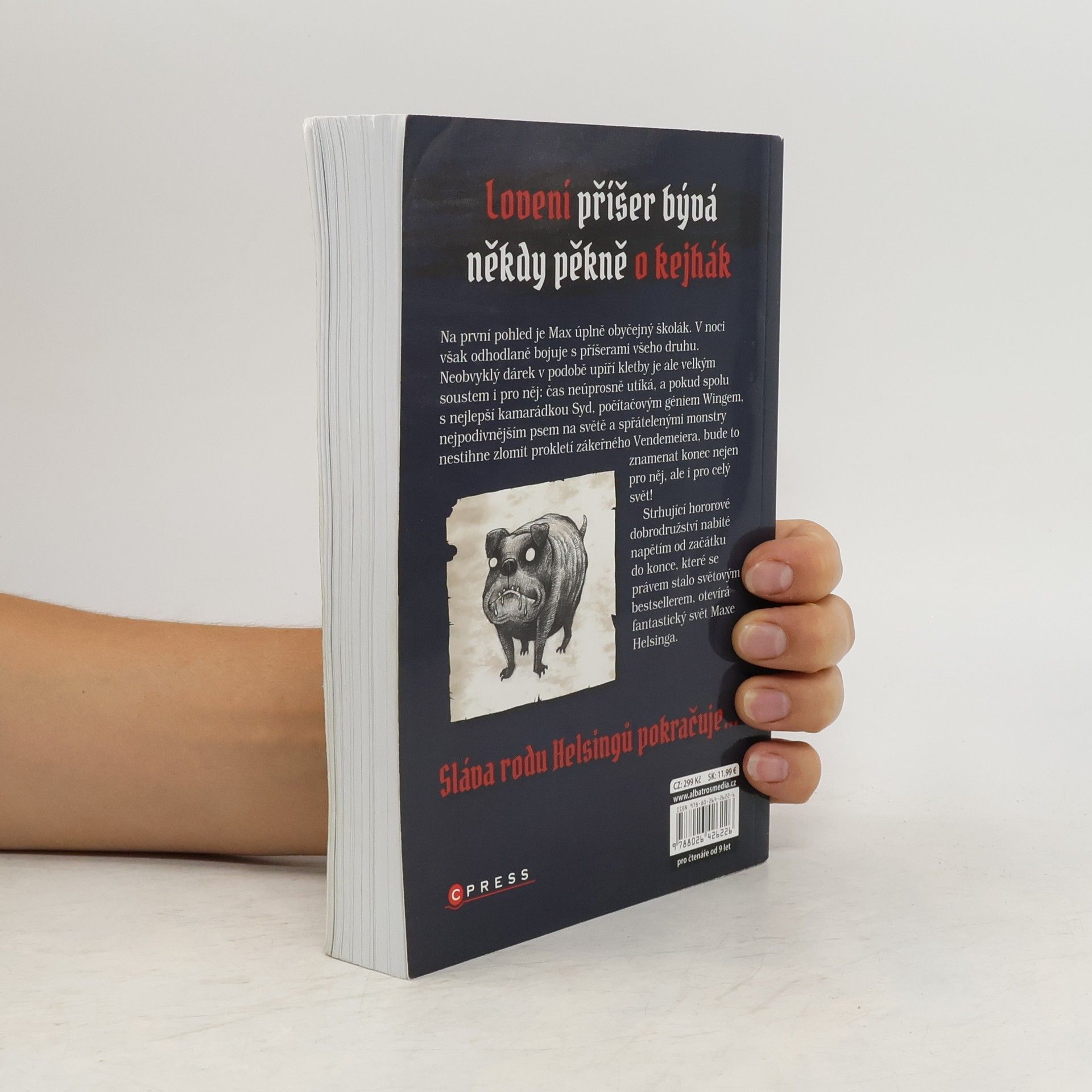 Na první pohled je Max úplně obyčejný školák. V noci však odhodlaně bojuje s příšerami všeho druhu. Neobvyklý dárek v podobě upíří kletby je ale velkým soustem i pro něj: čas neúprosně utíká, a pokud spolu s nejlepší kamarádkou Syd, počítačovým géniem Wingem, nejpodivnějším psem na světě a spřátelenými monstry nestihne zlomit prokletí zákeřného Vendemeiera, bude to znamenat konec nejen pro něj, ale i pro celý svět! Strhující hororové dobrodružství nabité napětím od začátku do konce, které se právem stalo světovým bestsellerem, otevírá fantastický svět Maxe Helsinga.