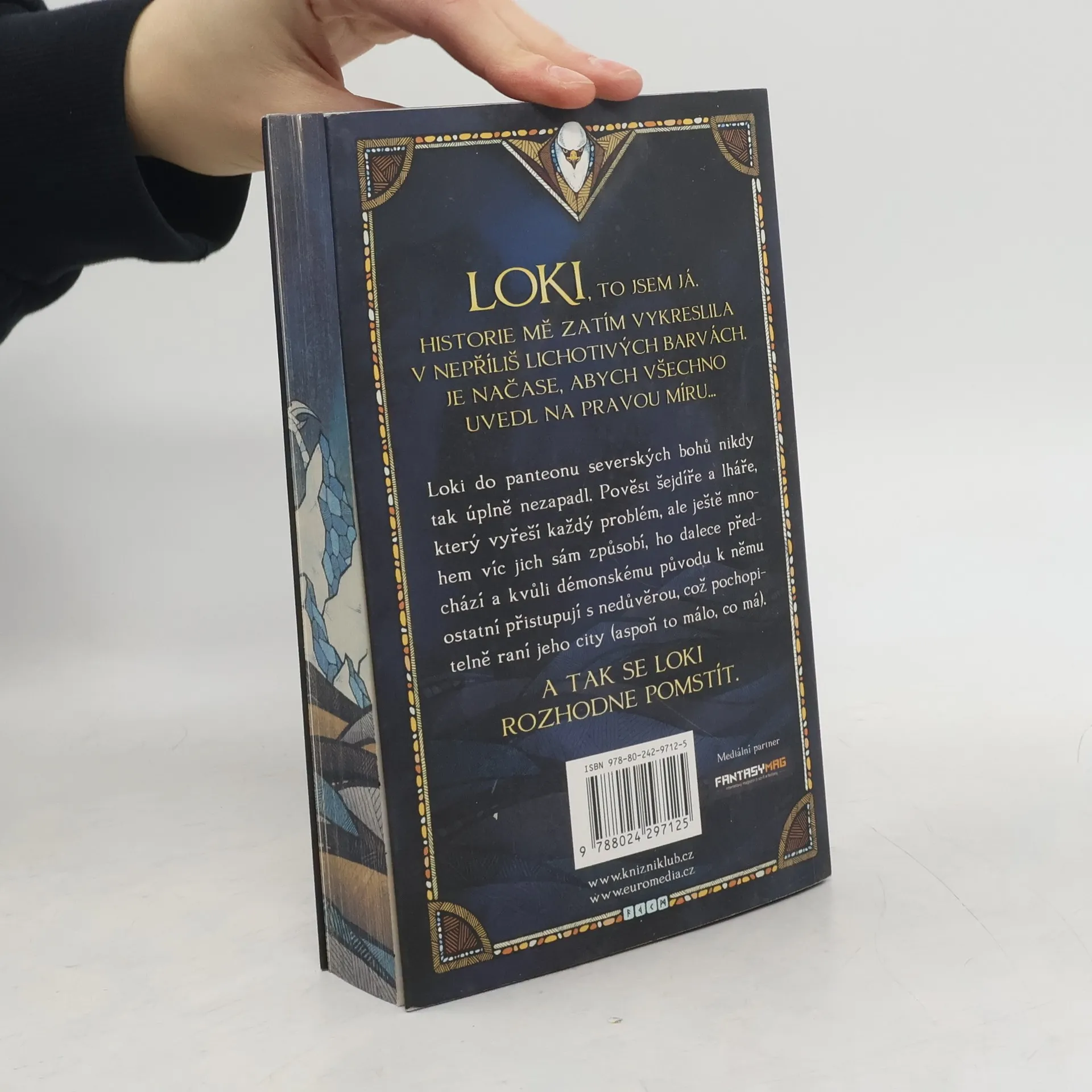 Loki, to jsem já. Loki Světlonoš, nepochopený, nepolapitelný pohledný a skromný hrdina této konkrétní snůšky lží. Berte to s nadhledem, ale je to zhruba tak pravdivé jako oficiální verze příběhu, a troufám si tvrdit, že mnohem zábavnější. Historie mě zatím vykreslila v nepříliš lichotivých barvách. Je načase, abych všechno uvedl na pravou míru. Loki do panteonu severských bohů nikdy tak úplně nezapadl. Pověst šejdíře a lháře, který vyřeší každý problém, ale ještě mnohem víc jich sám způsobí, ho dalece předchází a kvůli démonskému původu k němu ostatní přistupují s nedůvěrou, což pochopitelně raní jeho city (aspoň to málo, co má). A tak se Loki rozhodne pomstít. Jak se Ódinovi podařilo Lokiho lstí vylákat z rodného Chaosu? Jak vypadal jeho život mezi bohy Ásgardu, co způsobilo jeho pád a jak to bylo s tím slavným Ragnarökem? To vše a mnohem víc se dozvíte v této neoficiální verzi událostí vyprávěné největším lhářem na světě.