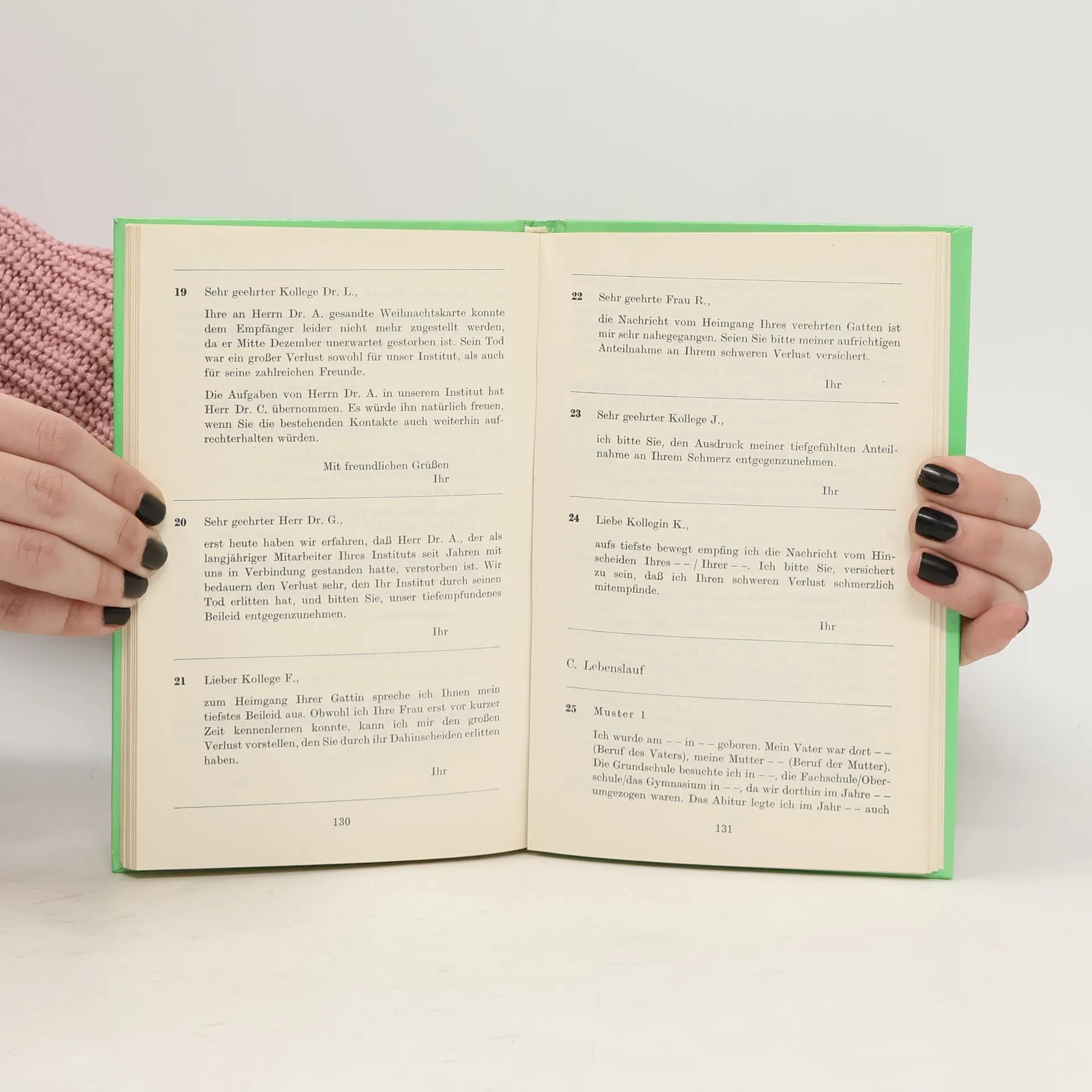 Kapitoly: Úprava dopisů, Všeobecná tematika, Knihy a časopisy: Výměna, objednávka, odběr a pod., Vědecké styky a informace, Publikace, Kongresy, Konference, Zasedání, Cesty, Návštěvy, Ubytování, Pozdravy, Pocty, Blahopřání, Projevy soustrasti, Životopis. První vydání. Cena knihy v čase vydání: 25.- Kčs.