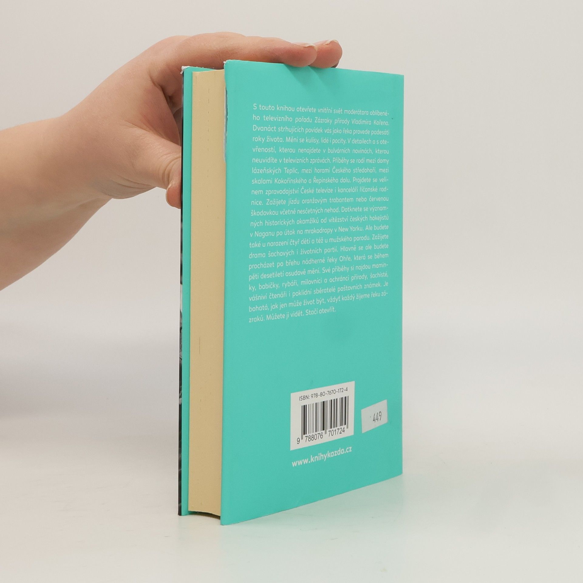 Povídky psané zralou rukou čerstvého padesátníka. S touto knihou otevřete vnitřní svět moderátora oblíbeného televizního pořadu Zázraky přírody Vladimíra Kořena. Dvanáct strhujících povídek Vás jako řeka provede padesáti lety života. Mění se kulisy, lidé i pocity. V detailech a s otevřeností, kterou nenajdete v bulvárních novinách, kterou nevidíte v televizních zprávách. Příběhy se rodí mezi domy lázeňských Teplic, mezi horami Českého středohoří, mezi skalami kokořínského a řepínského dolu. Projdete se velínem zpravodajství České televize i kanceláří říčanské radnice. Zažijete jízdu oranžovým trabantem nebo červenou škodovkou včetně nesčetných nehod. Dotknete se významných okamžiků naší historie od vítězství českých hokejistů v Naganu po útok na mrakodrapy v New Yorku. Ale budete také u narození čtyř dětí a též u mužského porodu. Zažijete drama šachových i životních partií. Hlavně se ale budete procházet po břehu nádherné řeky Ohře, která se během padesáti let osudově mění. Své příběhy si najdou maminky, babičky, rybáři, milovníci a ochránci přírody, šachisté, vášniví čtenáři i poklidní sběratelé poštovních známek. Je bohatá, jak jen může život být. Vždyť každý žijeme Řeku zázraků. Můžete ji vidět. Stačí otevřít.