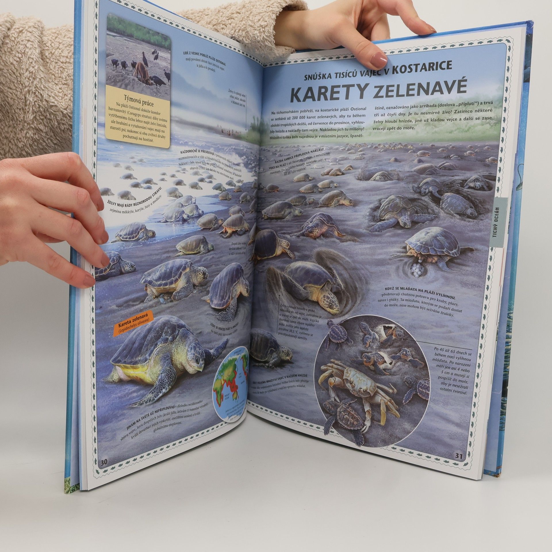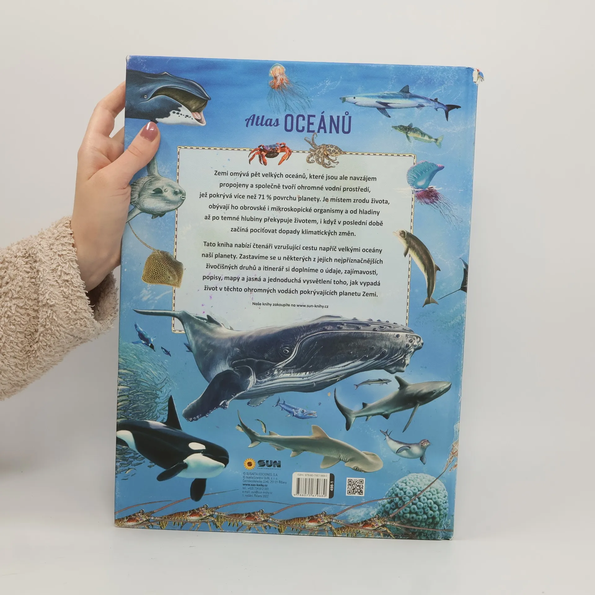 Podtitul: objevuj mořský svět. Cesta napříč velkými oceány naší planety. Přehled živočišných druhů, zajímavosti, popisy, mapy a vysvětlení toho, jak vypadá život v těchto ohromných vodách pokrývajících planetu zemi.