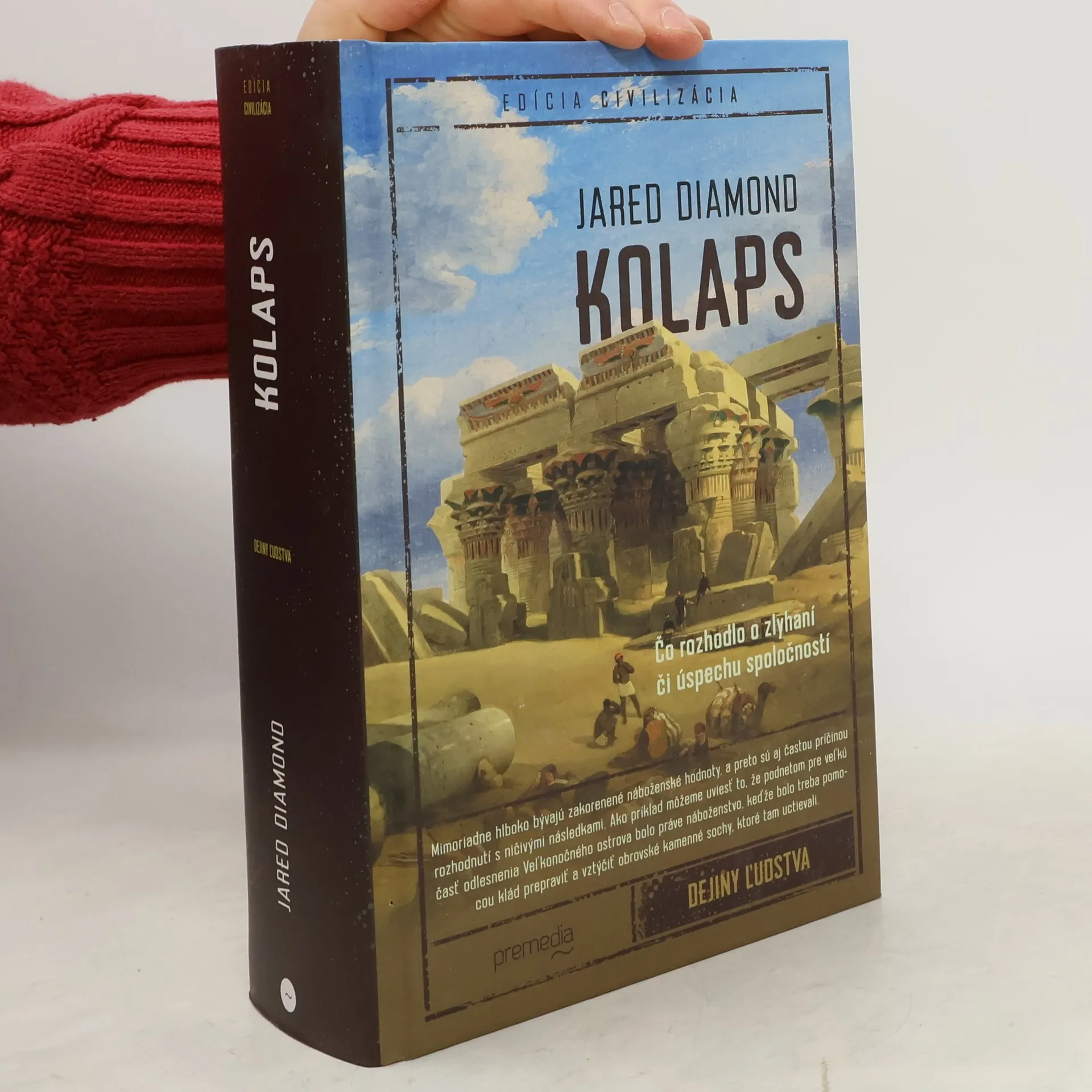 Jared Diamond vo svojom bestselleri Osudy ľudských spoločností skúmal, ako a prečo západné civilizácie vyvinuli technológie a spôsoby, ktoré im umožnili ovládnuť väčšinu sveta. Vo voľnom pokračovaní knihy skúma druhú stranu rovnice: Čo spôsobilo, že sa niektoré z veľkých civilizáciíminulosti zrútili, a čo sa z ich osudov môžeme naučiť? Prostredníctvom série fascinujúcich historicko-kultúrnych príbehov Diamond aj teraz rozvíja komplexnú globálnu tézu. Od polynézskych kultúr na Veľkonočnom ostrove cez prekvitajúce americké civilizácie Anasaziov a Mayov až po kolóniu Vikingov v Grónsku sleduje základný vzorec katastrofy. Poškodenie životného prostredia, zmena klímy, rýchly rast populácie a nerozumné politické rozhodnutia boli faktormi zániku týchto spoločností, ale iné spoločnosti našli riešenia a pretrvali. Podobným problémom čelíme aj dnes a už priniesli katastrofu Rwande a Haiti, hoci Čína a Austrália sa snažia vyrovnať sa s nimi inovatívnymi spôsobmi. Ako dokumentuje kniha, napriek zdanlivo nevyčerpateľnému bohatstvu našej spoločnosti a jej politickej moci sa problémy objavujú aj na miestach, ktoré by mali byť voči nim odolné. Brilantná, poučná a nesmierne pútavá kniha Kolaps je predurčená zaujať miesto jednej zo základných kníh našej doby a nastoliť naliehavú otázku: Ako sa náš svet môže vyhnúť ekologickej samovražde?