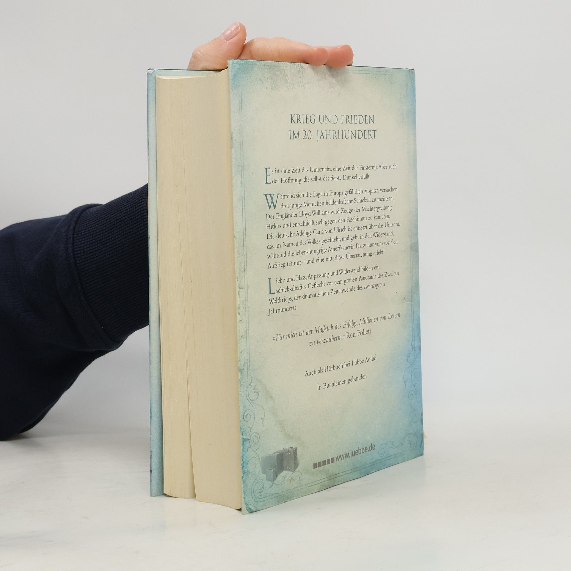 1933. Nach dem Ersten Weltkrieg ist eine neue Generation herangewachsen, während sich die Lage in Europa erneut zuspitzt. In dieser dramatischen Zeit kämpfen drei junge Menschen um ihr Schicksal. Der Engländer Lloyd Williams wird Zeuge der Machtergreifung Hitlers und meldet sich freiwillig als Soldat im Spanischen Bürgerkrieg, um gegen den Faschismus zu kämpfen. Die deutsche Adelige Carla von Ulrich ist entsetzt über das Unrecht, das im Namen des Volkes geschieht, und geht in den Widerstand, was ihre Familie in höchste Gefahr bringt. Die amerikanische Daisy hingegen träumt vom sozialen Aufstieg und heiratet einen englischen Lord, der jedoch auf Seiten der Faschisten steht. Die Geschichte spannt sich von Berlin bis Moskau, von London bis Washington, D.C., und erzählt die miteinander verbundenen Schicksale von Menschen in Deutschland, Russland, England und den USA, während der Zweite Weltkrieg droht. Es ist eine Zeit des Umbruchs und der Finsternis, aber auch der Hoffnung, die selbst das tiefste Dunkel erhellt. Als in sich abgeschlossener historischer Roman ist dies der dramatische Höhepunkt von Ken Folletts Jahrhundert-Trilogie, die mit dem ersten Teil begann und mit dem letzten Teil ihren Abschluss findet. Platz 1 der SPIEGEL-Bestsellerliste.
