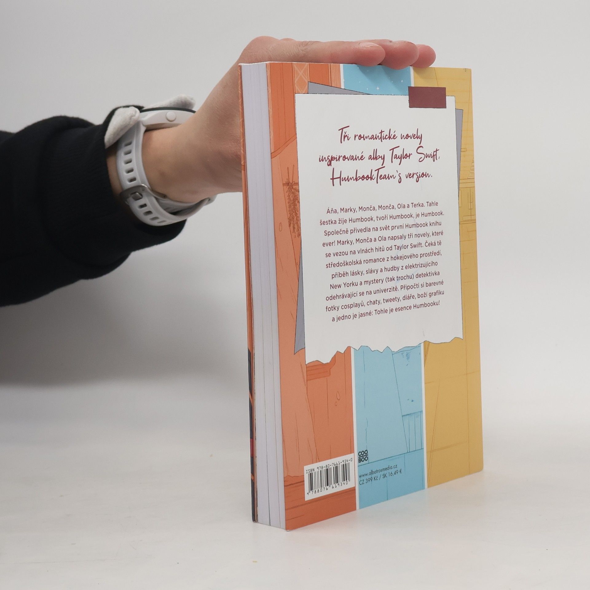 Tři romantické novely inspirované alby Taylor Swift, HumbookTeam's version. Áňa, Marky, Monča, Monča, Ola a Terka. Tahle šestka žije Humbook, tvoří Humbook, je Humbook. A společně přivedla na svět první Humbook knihu ever! Marky, Monča a Ola napsaly tři novely, které se vezou na vlnách hitů od Taylor Swift. Čeká tě středoškolská romance z hokejového prostředí, příběh lásky, slávy a hudby z New Yorku a mystery (tak trochu) detektivka odehrávající se na univerzitě. Připočti si barevné fotky cosplayů, chaty, tweety, diáře, boží grafiku a jedno je jasné: Tohle je esence Humbooku!