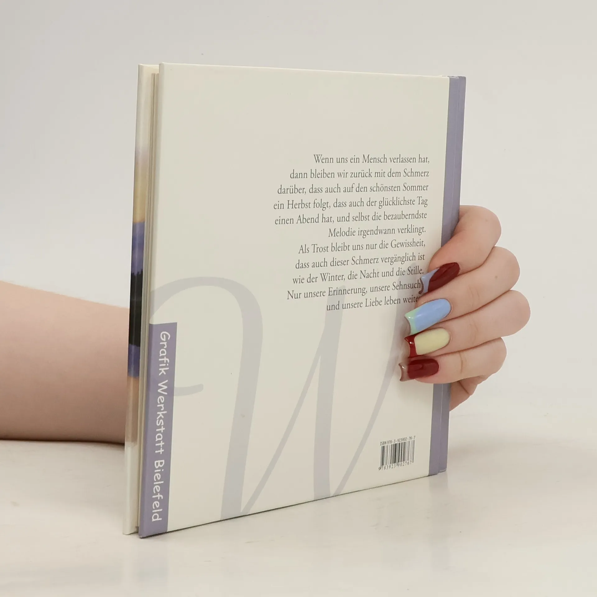 Wenn uns ein Mensch verlassen hat, dann bleiben wir zurück mit dem Schmerz darüber, dass auch auf den schönsten Sommer ein Herbst folgt, dass auch der glücklichste Tag einen Abend hat, und selbst die bezauberndste Melodie irgendwann verklingt. Als Trost bleibt uns nur die Gewissheit, dass auch dieser Schmerz vergänglich ist wie der Winter, die Nacht und die Stille. Nur unsere Erinnerung, unsere Sehnsucht und unsere Liebe leben weiter. Das Geschenkbuch erzählt von Trauer, Verlust und Abschied – es schenkt aber gleichzeitig denen, die einen lieben Menschen verloren haben, Lichtblicke und Trost. Geschenkbücher aus der Grafik Werkstatt Zum Geburtstag, zur Hochzeit, zum Mutmachen oder einfach als kleine Aufmerksamkeit zwischendurch. DIese Geschenkbuch-Reihen beinhalten Grüße in humorvoller, einfühlsamer oder tröstender Weise für jede Lebenslage.