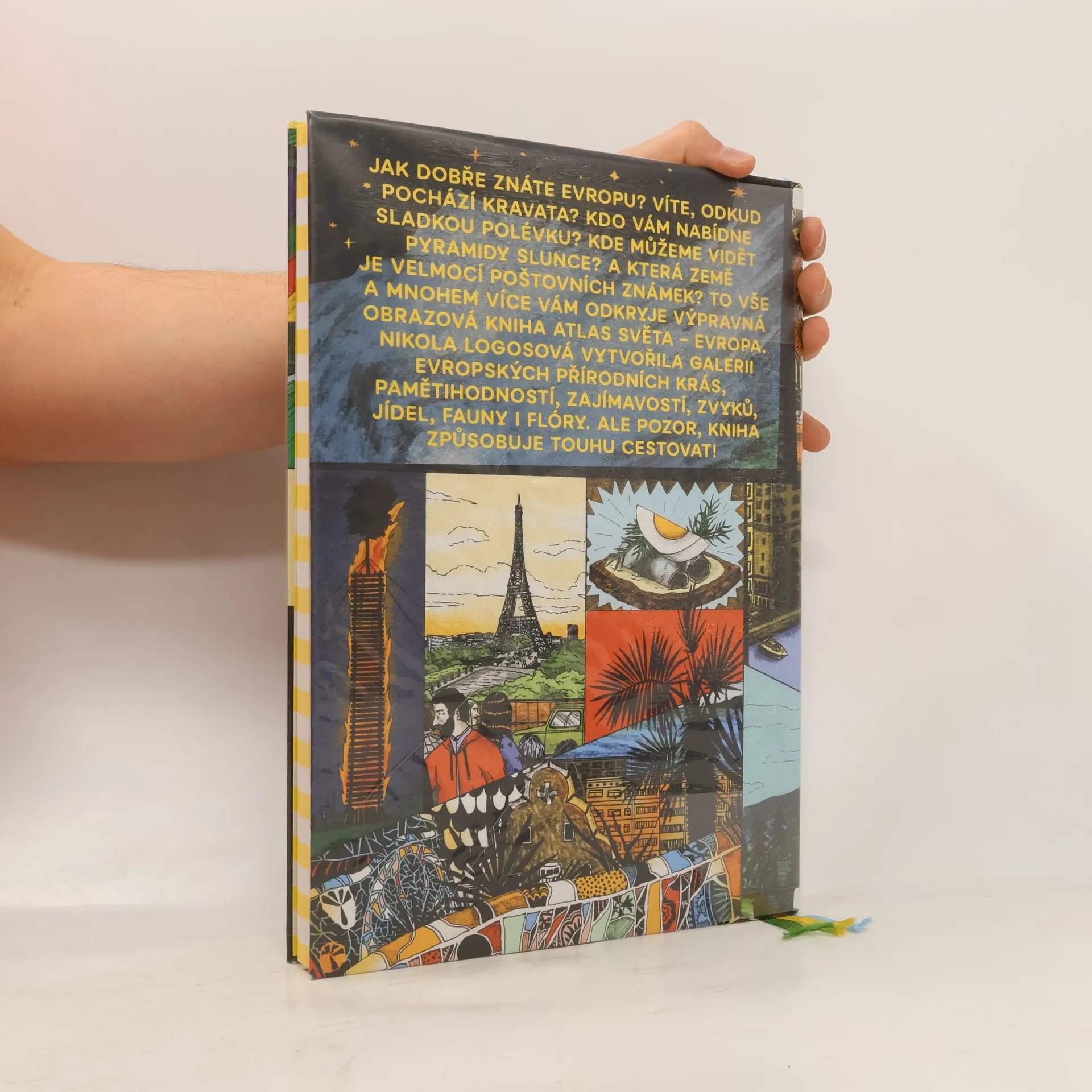 Celá Evropa v jedné knize? Že to není možné? Ale je, Nikola Logosová vytvořila úchvatnou galerii všech evropských zemí, jejich přírodních krás, pamětihodností, zajímavostí, jídel, fauny i flóry. Vydejte se na výlet s výpravnou obrazovou knihou Atlas světa – Evropa. Víte, odkud pochází kravata? Kdo vám nabídne sladkou polévku? Kde můžete vidět pyramidy slunce? A která země je velmocí poštovních známek? To vše (a ještě mnohem více) najdete na sto stranách této knihy. Ale pozor, způsobuje touhu cestovat!