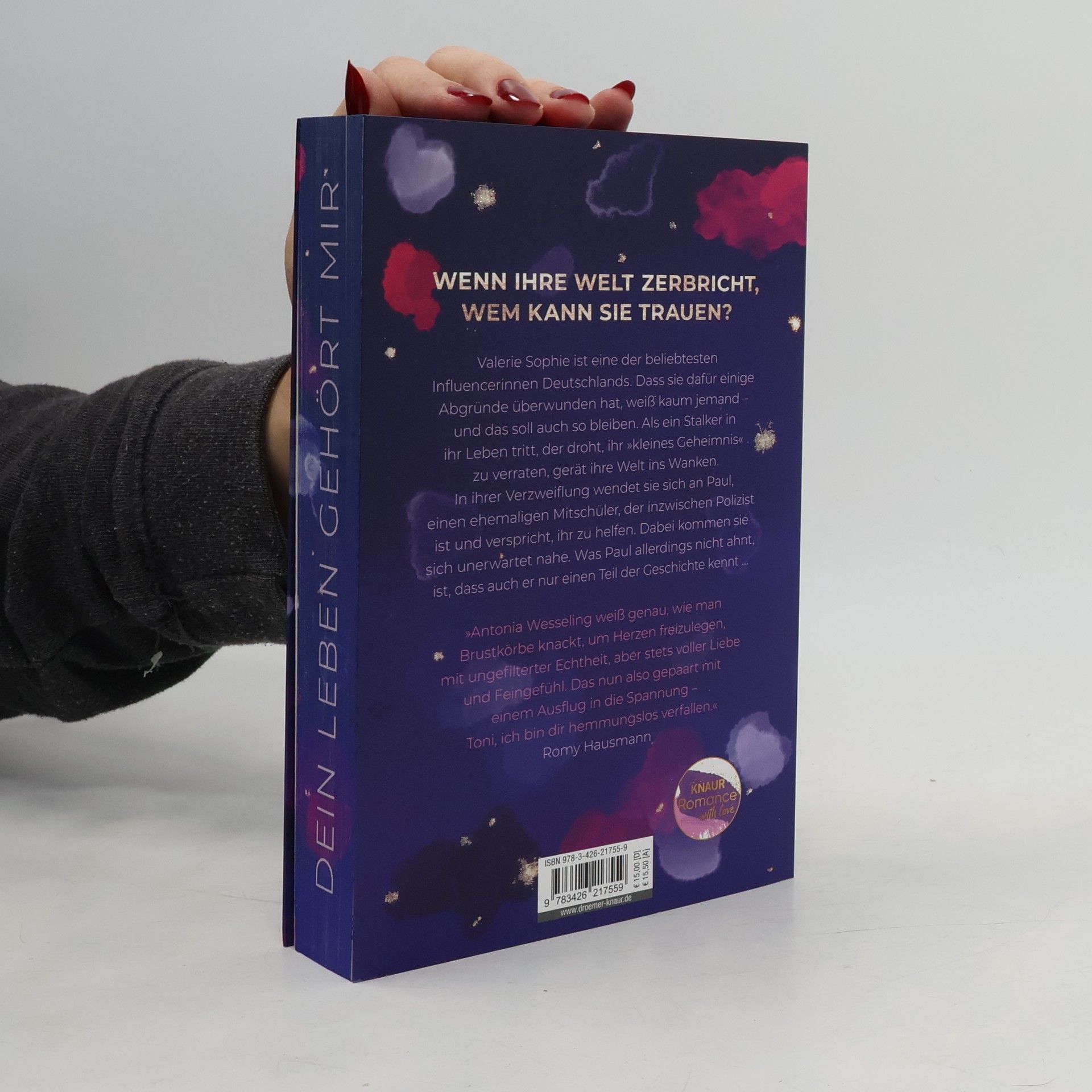 Wenn ihre Welt zerbricht, wem kann sie trauen? Die Geschichte dreht sich um Valerie Sophie, eine der größten Influencerinnen Deutschlands, die trotz ihres Erfolgs eine dunkle Vergangenheit hat. Als ein Stalker auftaucht, der droht, ihr Geheimnis zu enthüllen, gerät ihr Leben aus den Fugen. In ihrer Verzweiflung sucht sie Hilfe bei Paul, einem ehemaligen Mitschüler und Polizisten, und zwischen den beiden entwickelt sich eine unerwartete Nähe. Doch Paul kennt nur einen Teil der Wahrheit, was die Situation komplizierter macht. Diese fesselnde Mischung aus Romance und Thriller bietet spannende Einblicke in eine Welt voller Lügen, Geheimnisse und falscher Freunde. Die Autorin Antonia Wesseling, bekannt für ihre tiefgründigen New-Adult-Liebesromane, bringt frischen Wind in das Genre, indem sie Herz und Spannung miteinander verwebt. Der wunderschöne Farbschnitt ist exklusiv in der Erstauflage erhältlich. Leserinnen und Leser dürfen sich auf eine packende Geschichte freuen, die zeigt, dass nichts so ist, wie es scheint.