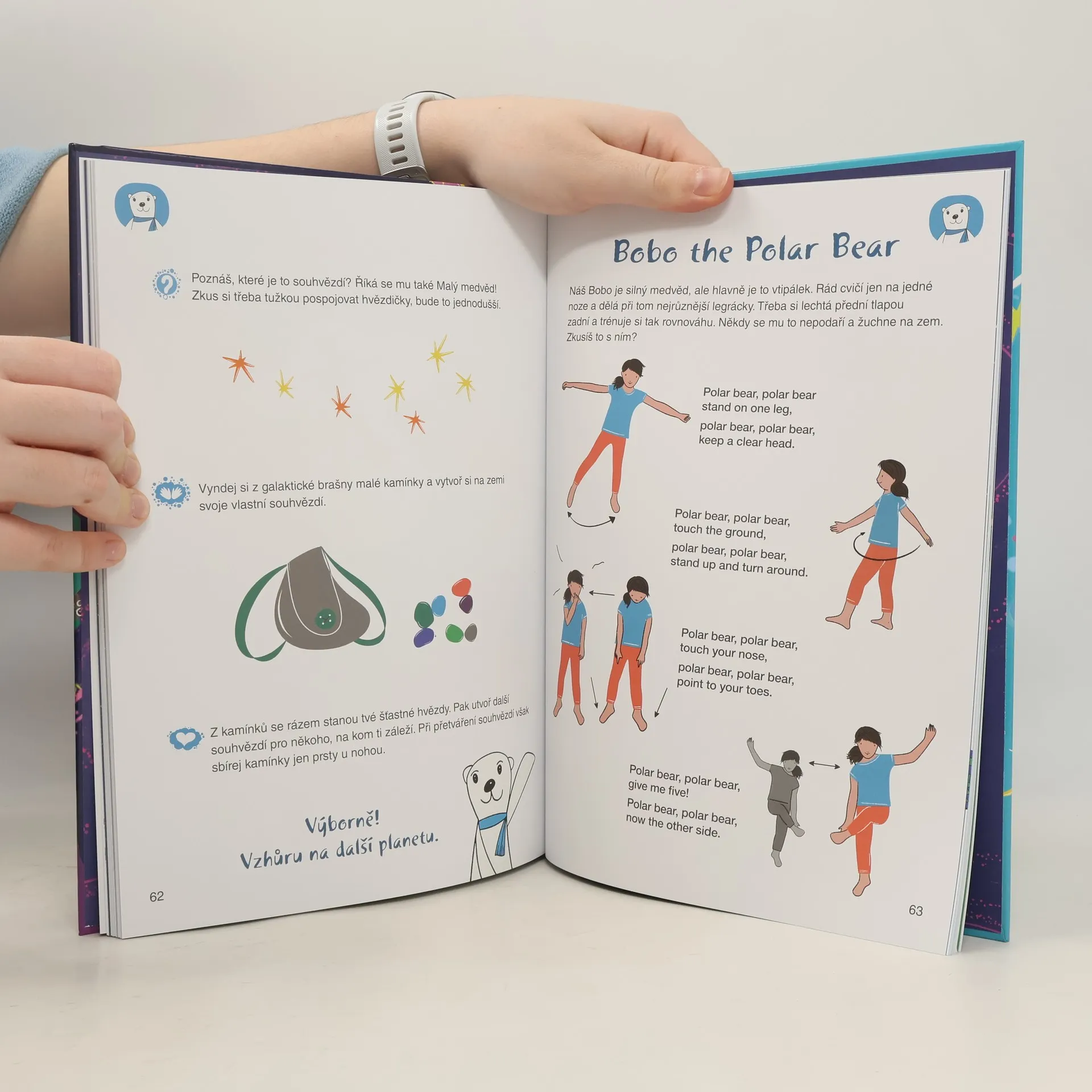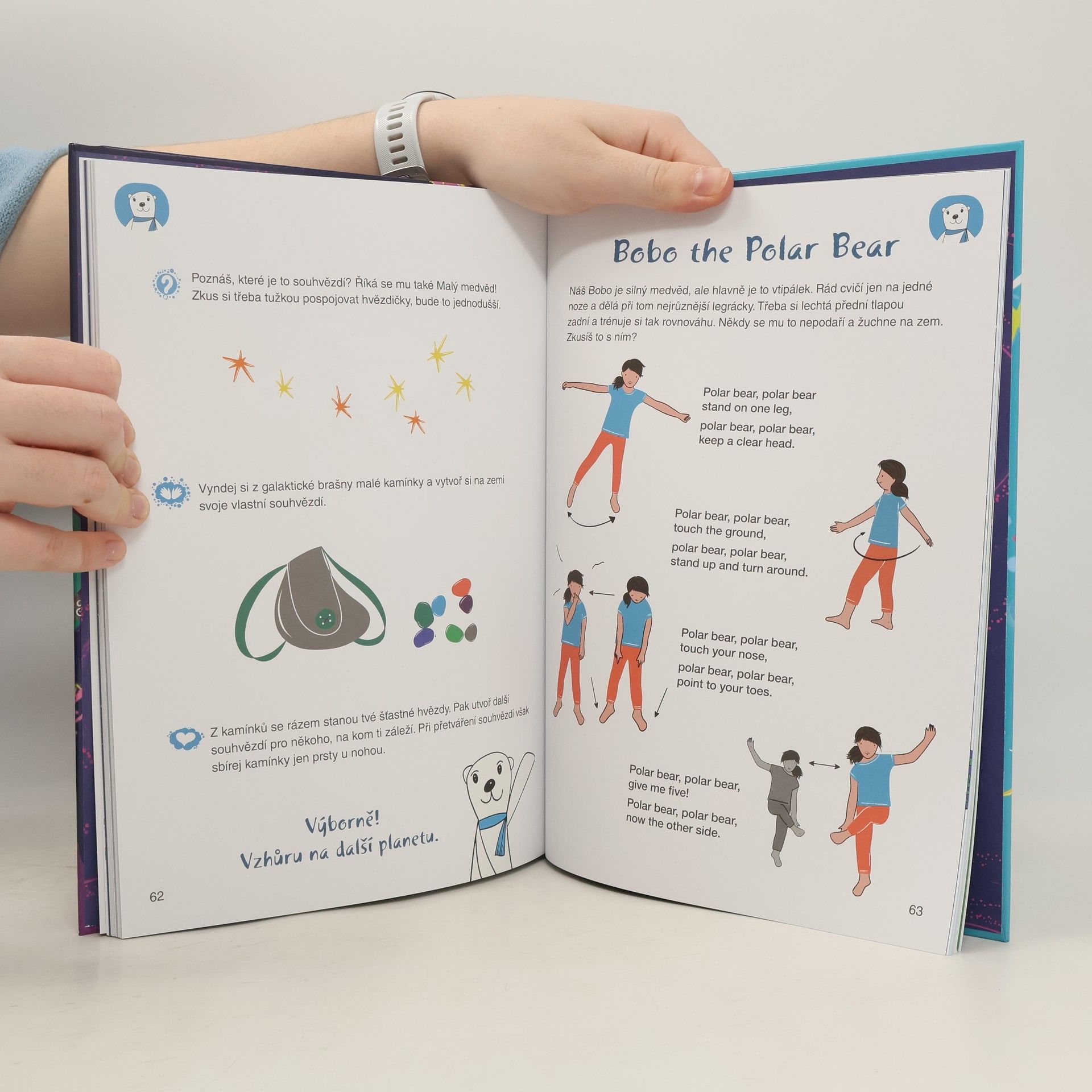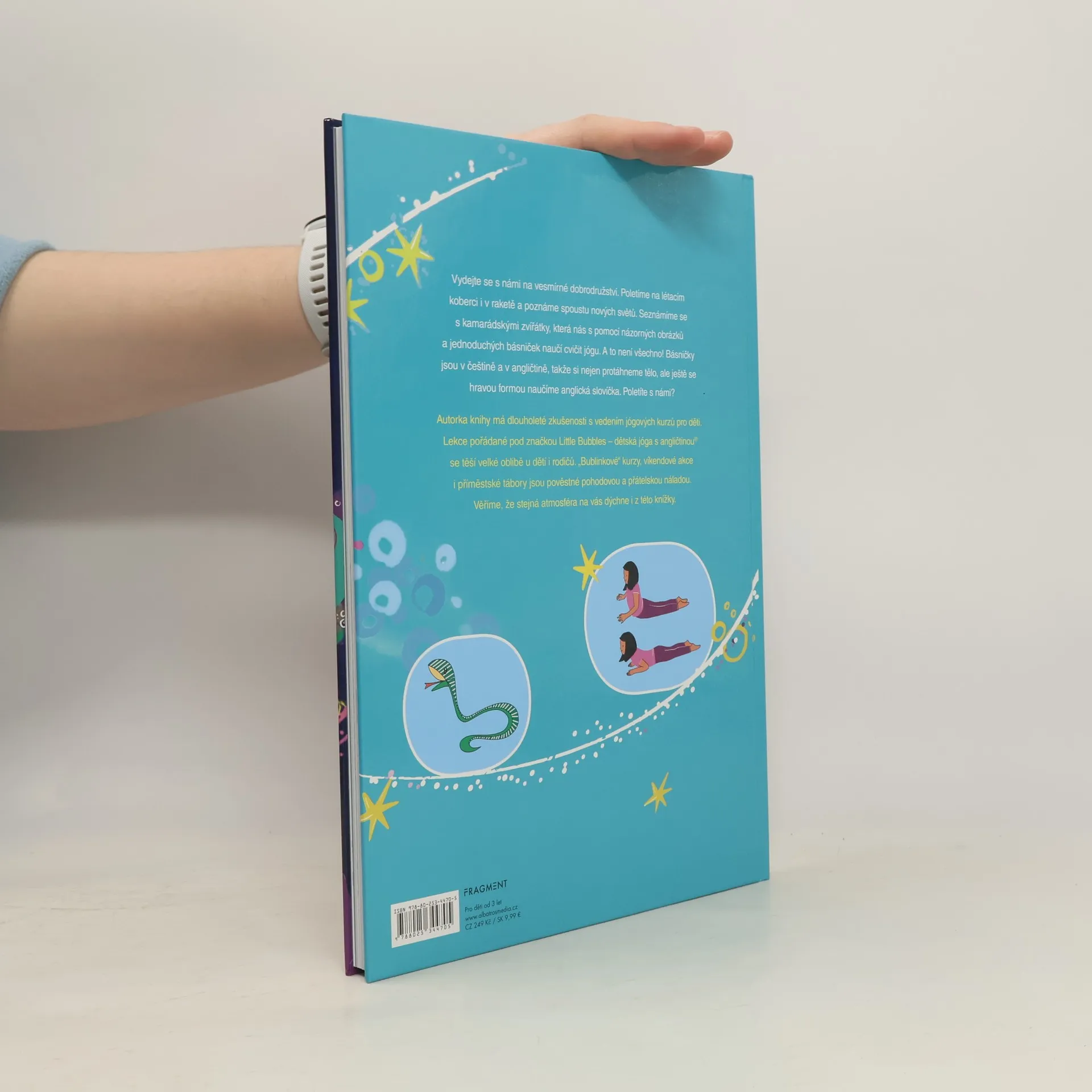 Vydejte se s námi na vesmírné dobrodružství. Poletíme na létacím koberci i v raketě a poznáme spoustu nových světů. Seznámíme se s kamarádskými zvířátky, která nás s pomocí názorných obrázků a jednoduchých básniček naučí cvičit jógu. A to není všechno! Básničky jsou v češtině a v angličtině, takže si nejen protáhneme tělo, ale ještě se hravou formou naučíme anglická slovíčka. Poletíte s námi?