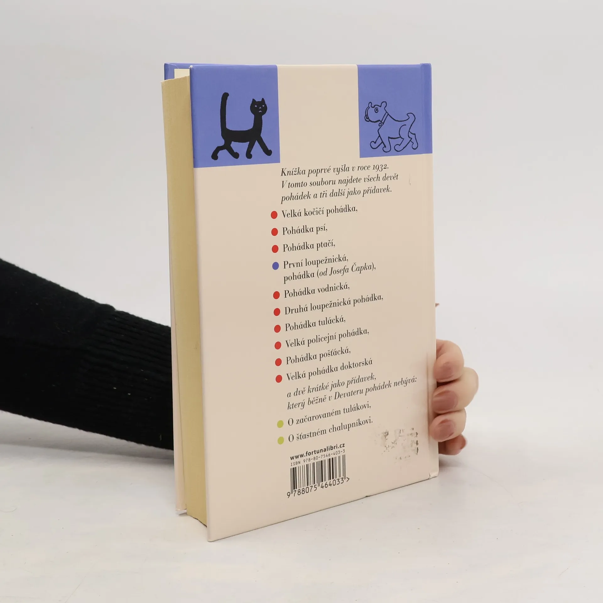 Devatero pohádek Karla Čapka, s ilustracemi jeho bratra Josefa, bezesporu patří do zlatého fondu literatury pro děti. Pohádky původně vznikaly jednotlivě a prvního knižního vydání se dočkaly v roce 1932. Autor s milým a vřelým humorem, pomocí pohádkových příběhů, objasňuje různé jevy běžného života a vysvětlí nám spoustu faktů ze psí a kočičí říše či tajemství profese pošťácké, loupežnické, vodnické i doktorské.V tomto našem souborném vydání najdete všech devět pohádek a tři další jako přídavek:Velká kočičí pohádka, Pohádka psí, Pohádka ptačí, První loupežnická pohádka (1. přídavek od Josefa Čapka), Pohádka vodnická, Druhá loupežnická pohádka, Pohádka tulácká, Velká policejní pohádka, Pohádka pošťácká a Velká pohádka doktorská… a dvě krátké, které běžně v Devateru nebývají: O začarovaném tulákovi a O šťastném chalupníkovi.