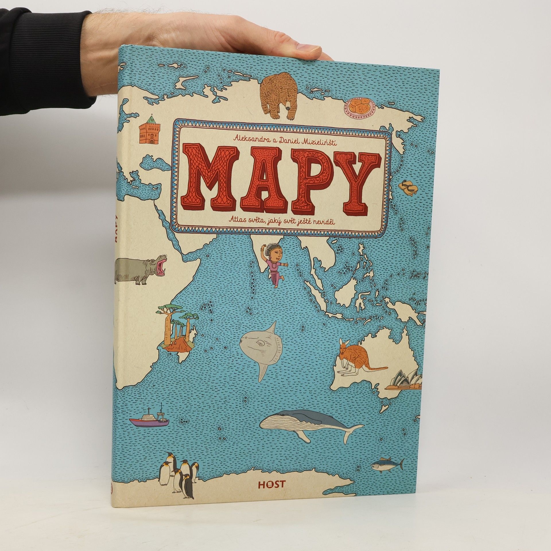 Vydejte se s námi na nezapomenutelnou cestu kolem světa... Spatříte gejzíry na Islandu, karavany v egyptské poušti a mayská města v Mexiku. V Anglii si zahrajete kriket, v Indii zacvičíte jógu a v Číně ochutnáte stoletá vejce. V Austrálii vás udiví ptakopysk, ve Finsku polární noc a na Madagaskaru obrovský baobab. Města, řeky i hory, zvířata a rostliny, významné osobnosti, historické události, symboly i národní jídla — přes čtyři tisíce obrázků vám představí, co je pro danou zemi typické. Obrázkové putování po dvaačtyřiceti zemích a šesti kontinentech na jednapadesáti dvoustranách s nádherně zdobenými okraji, které připomínají mapy dávných objevitelů a mořeplavců. Ilustrovaný atlas plný fascinujících detailů je oslavou rozmanitosti světa, od obrovských hor po malinké broučky — a všeho mezi tím. Atlas světa, jaký svět ještě neviděl!