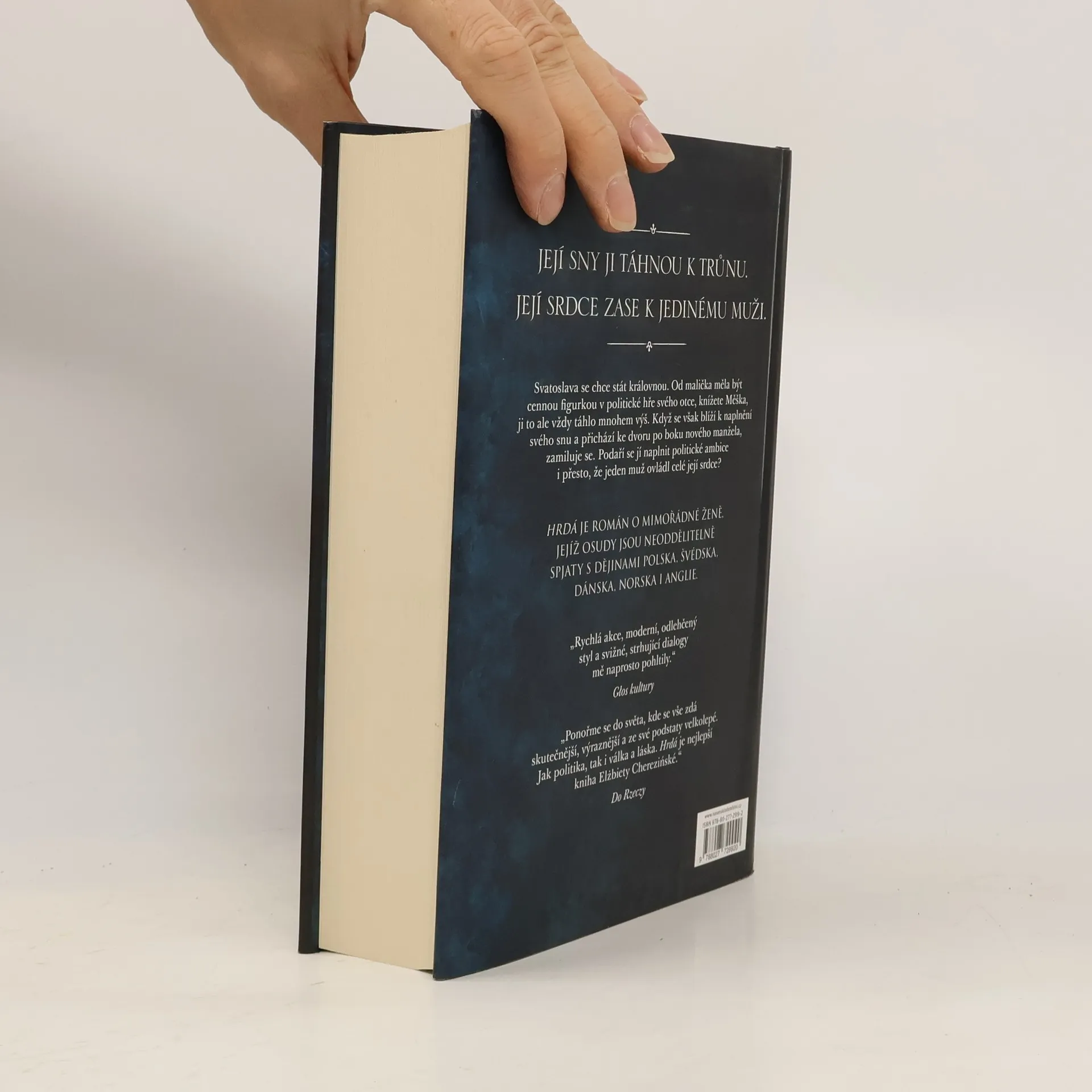Svatoslava byla vždycky hrdá. Spolu s bratrem Boleslavem od malička přihlížela panování svého otce, knížete Měška. Měla se stát cennou figurkou v jeho politické hře. Její ambice ale sahaly mnohem výš: chtěla se stát královnou. Cesty osudu jsou však nepředvídatelné. Když šla ke dvoru svého nového manžela, potkala někoho, kdo ovládl její srdce. Dokáže naplnit své ambice a zároveň milovat? Hraje se o hodně – přátelé se mění v nepřátele, láska v nenávist, svátost v prokletí. Hrdá je román o mimořádné ženě, jejíž osudy jsou neoddělitelně spojeny s dějinami Polska, Švédska, Dánska, Norska i Anglie. Vášeň, boj o trůn, krvavé bitvy a překvapivé zvraty, to je revír, po němž se Elżbieta Cherezińska pohybuje s lehkostí a dravostí sokola.