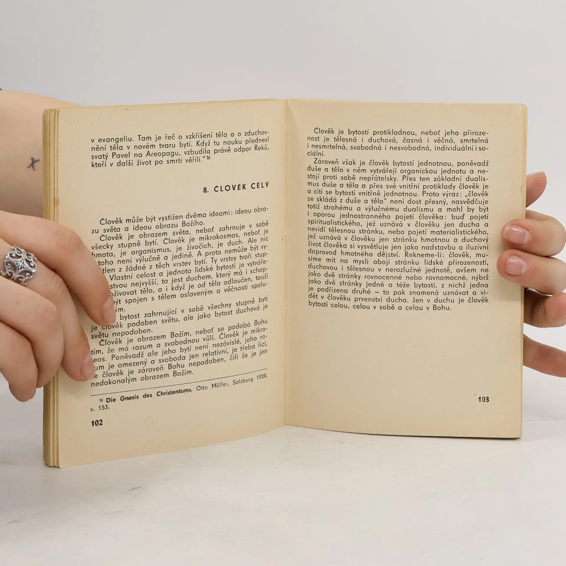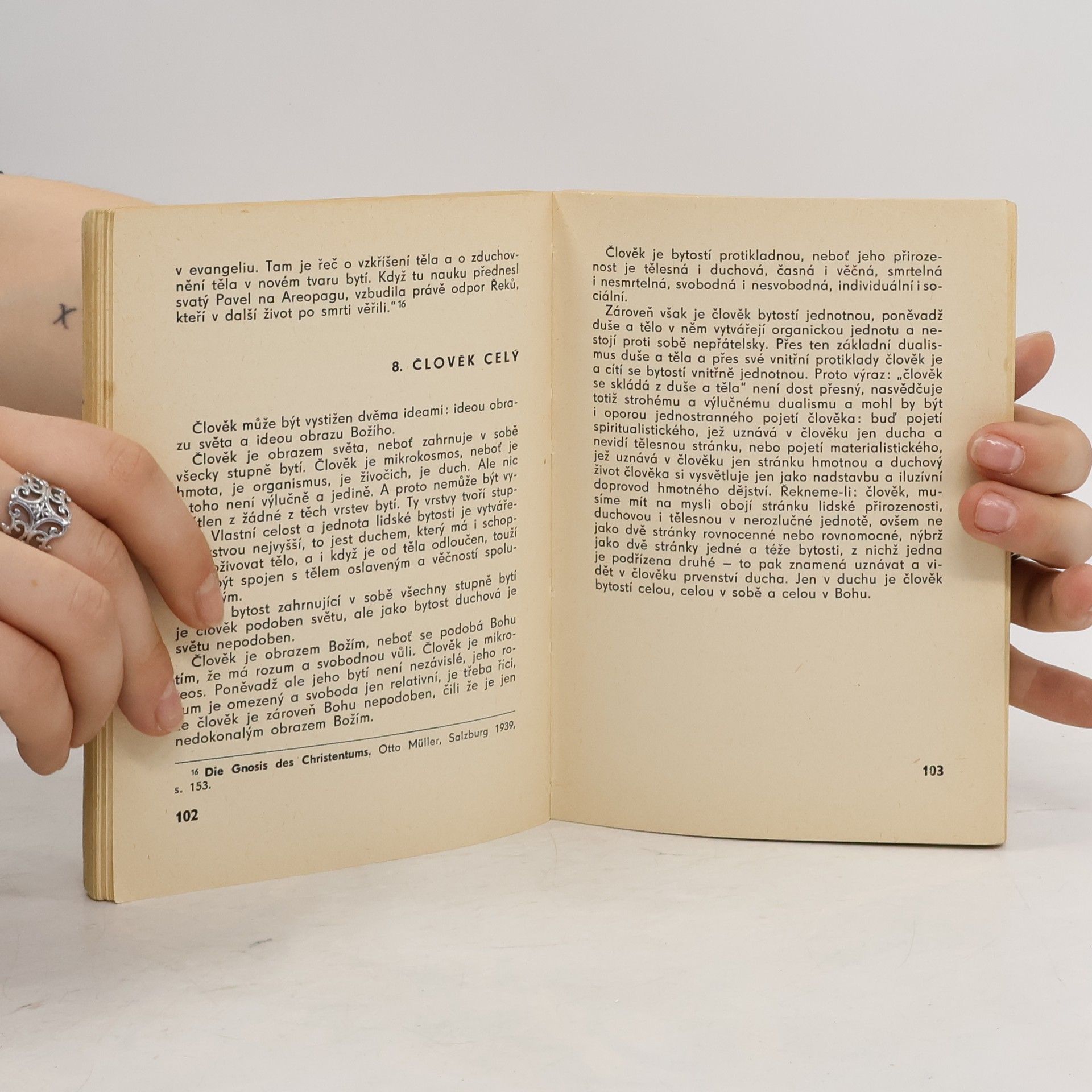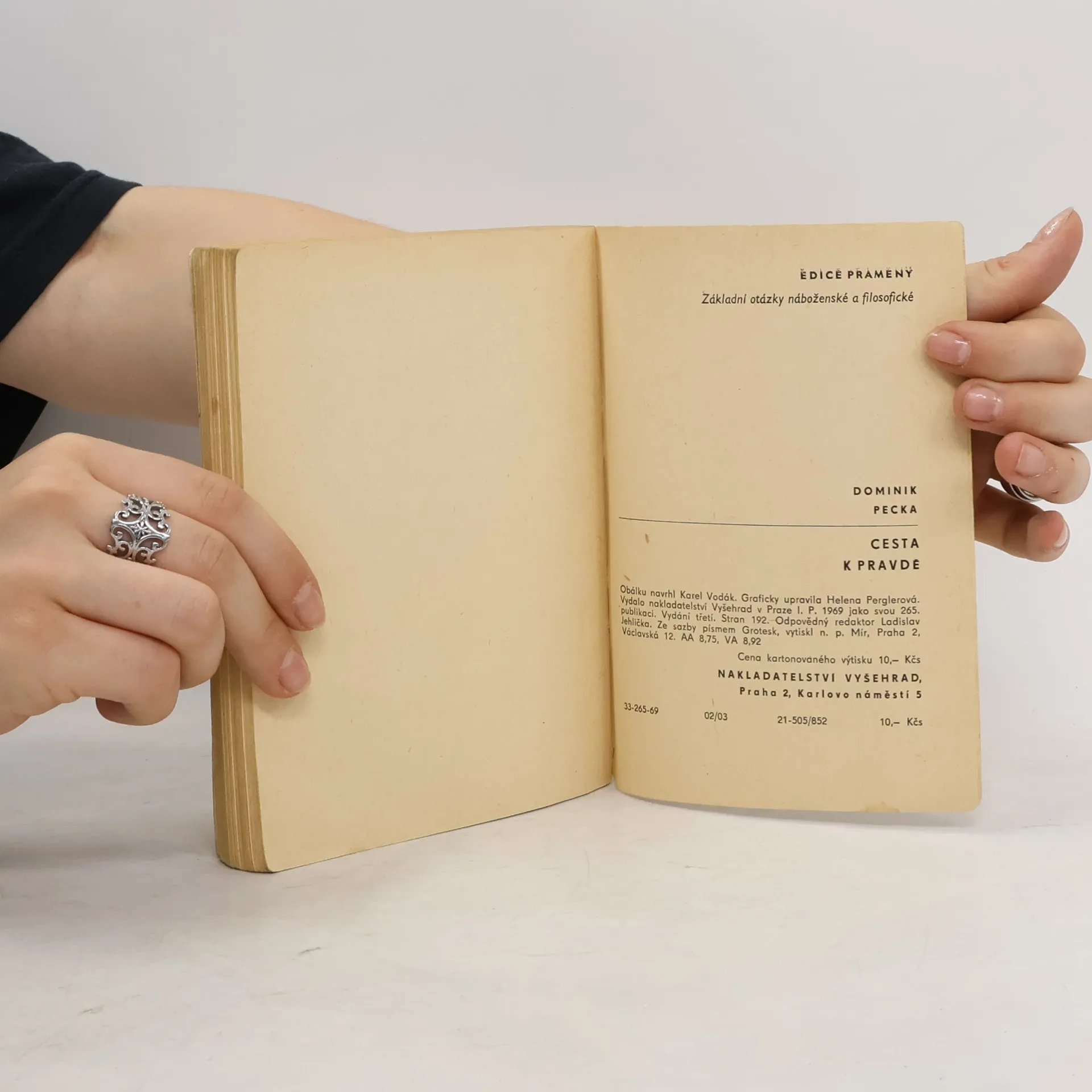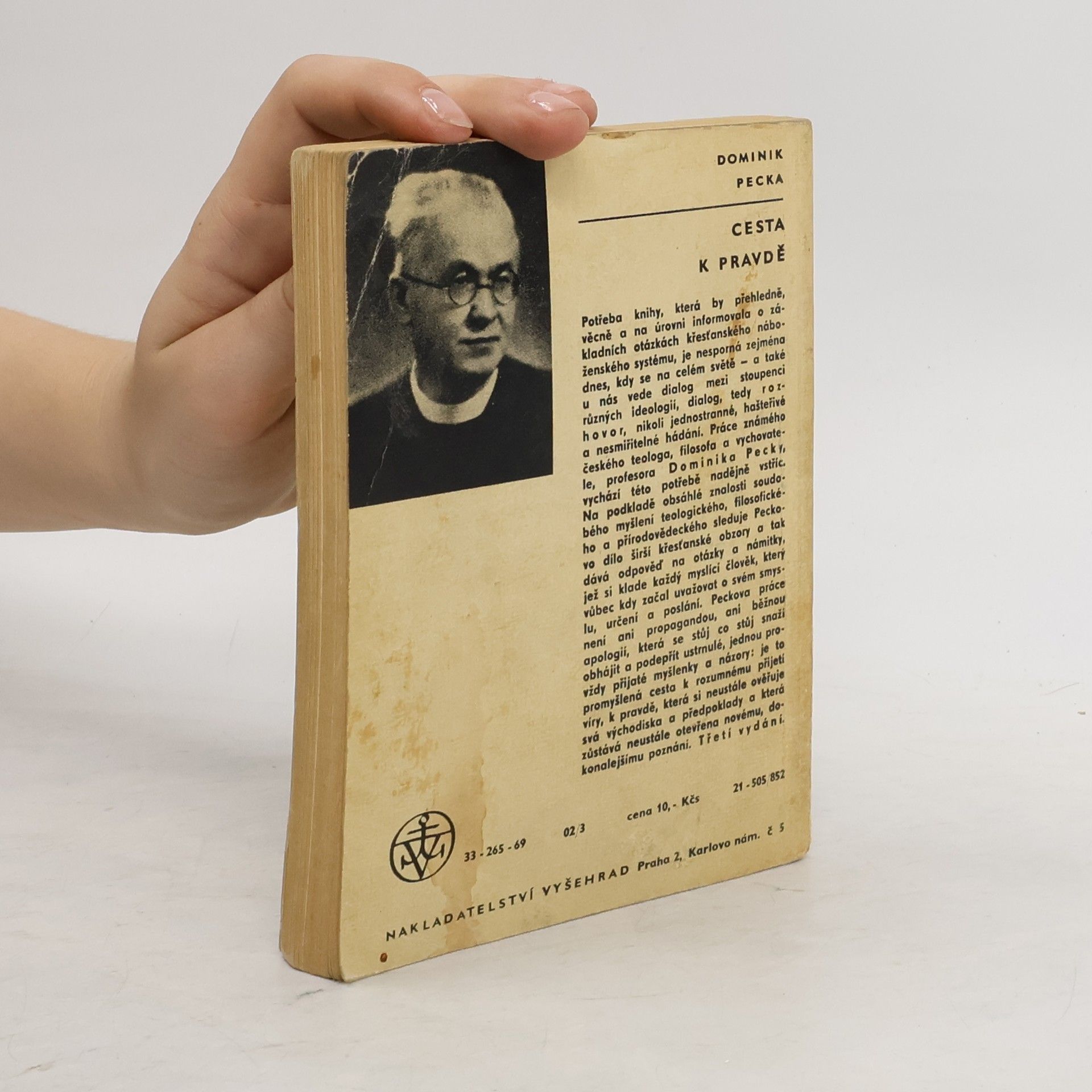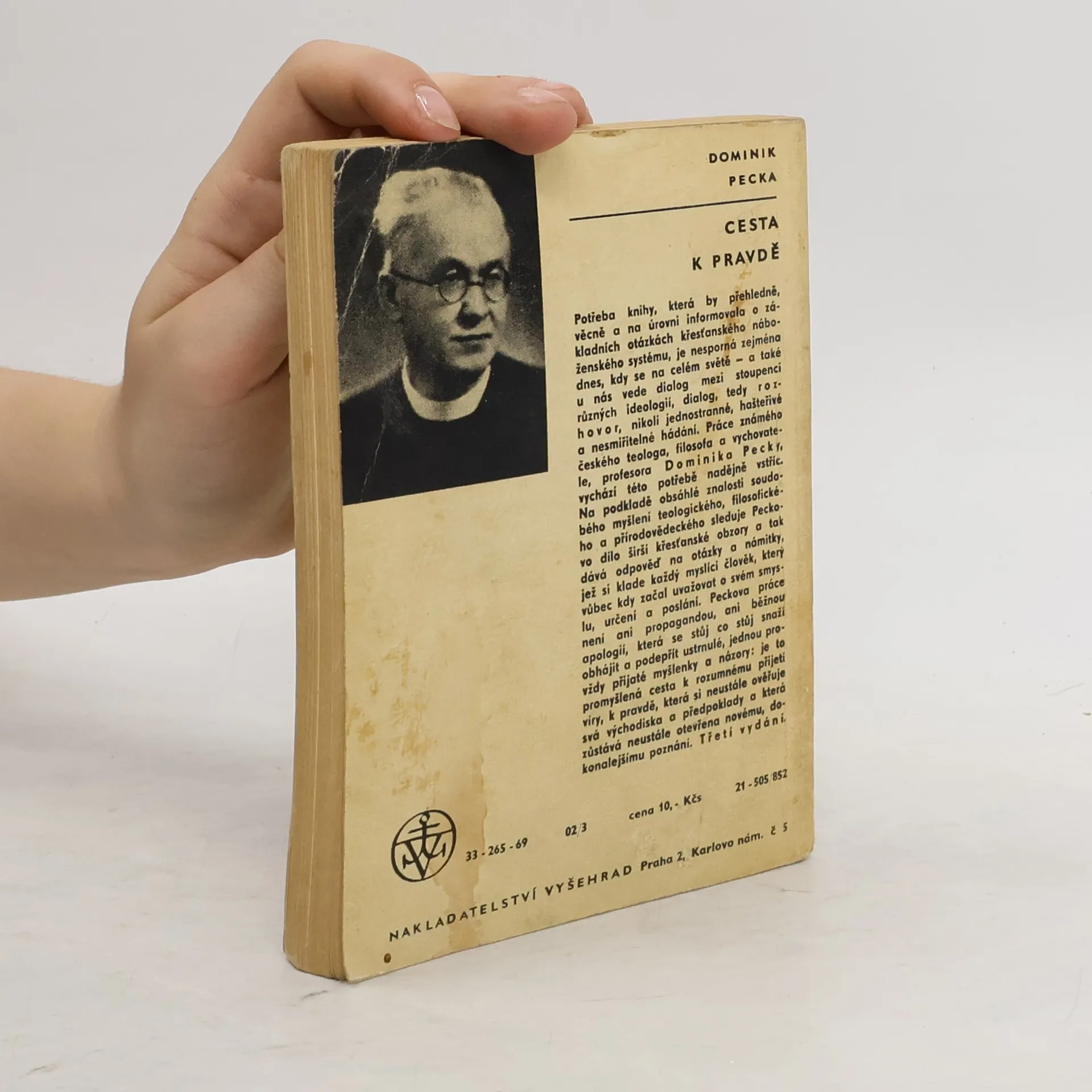 "Potřeba knihy, která by přehledně, věcně a na úrovni informovala o základních otázkách křesťanského náboženského systému, je nesporná zejména dnes, kdy se na celém světě - a také u nás vede dialog mezi stoupenci různých ideologií, dialog, tedy r o z h o v o r, nikoli jednostranné, hašteřivé a nesmiřitelné hádání. Práce známého českého teologa, filosofa a vychovatele Dominika Pecky, vychází této potřebě nadějně vstříc. Na podkladě obsáhlé znalosti soudobého myšlení teologického, filosofického a přírodovědeckého sleduje Peckovo dílo širší křesťanské obzory a tak dává odpověď na otázky a námitky, jež si klade každý myslící člověk, který vůbec kdy začal uvažovat o svém smyslu, určení a poslání. Peckova práce není ani propagandou, ani běžnou apologií, která se stůj co stůj snaží obhájit a podepřít ustrnulé, jednou provždy přijaté myšlenky a názory: je to promyšlená cesta k rozumnému přijetí víry, k pravdě, která si neustále ověřuje svá východiska a předpoklady a která zůstává neustále otevřena novému, dokonalejšímu poznání." Vydání třetí.