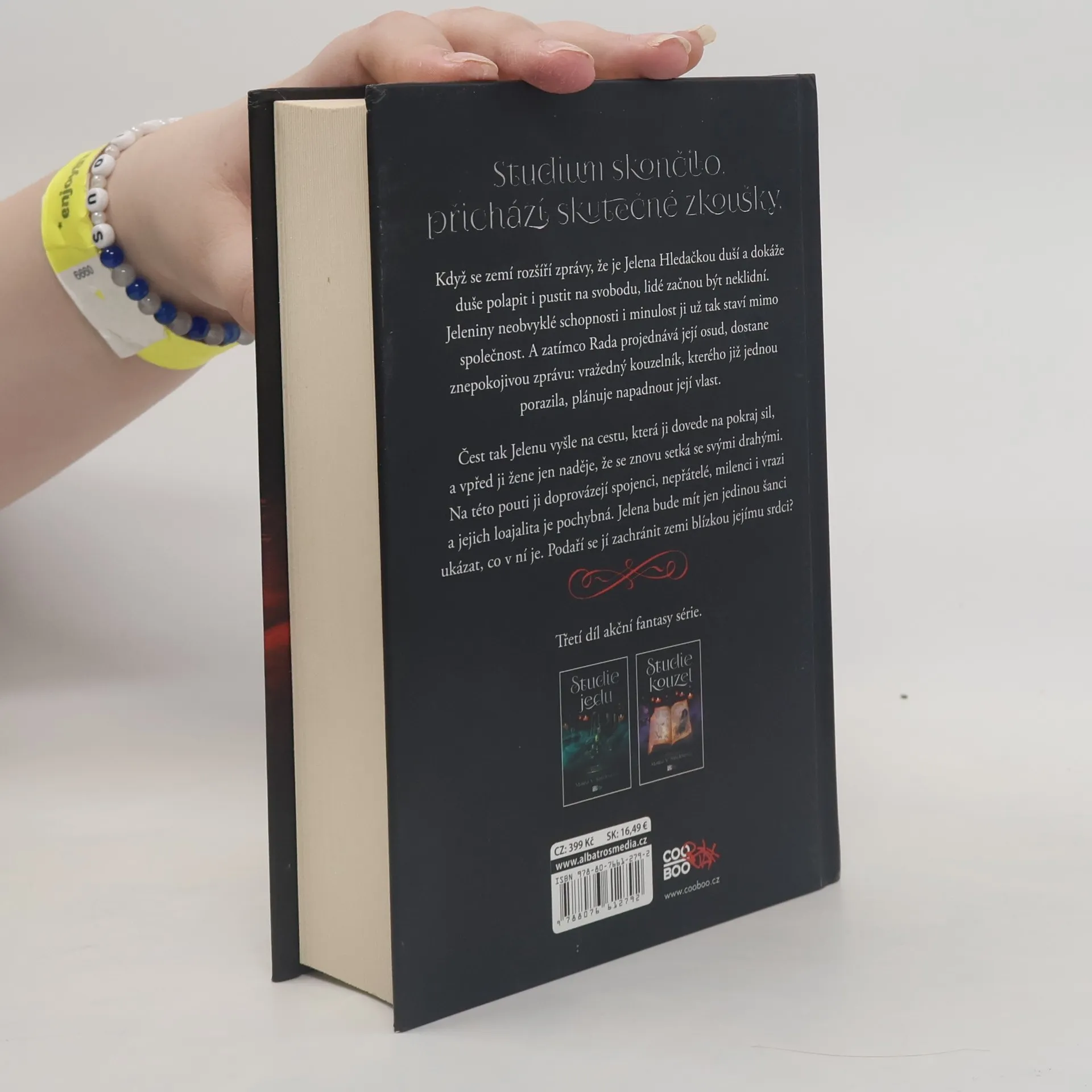 Studium skončilo, přichází skutečné zkoušky. Třetí díl akční fantasy série. Když se zemí rozšíří zprávy, že je Jelena Hledačkou duší a dokáže duše polapit i pustit na svobodu, lidé začnou být neklidní. Jeleniny neobvyklé schopnosti i minulost ji už tak staví mimo společnost. A zatímco Rada projednává její osud, dostane znepokojivou zprávu: vražedný kouzelník, kterého již jednou porazila, plánuje napadnout její vlast. Čest tak Jelenu vyšle na cestu, která ji dovede na pokraj sil, a vpřed ji žene jen naděje, že se znovu setká se svými drahými. Na této pouti ji doprovázejí spojenci, nepřátelé, milenci i vrazi a jejich loajalita je pochybná. Jelena bude mít jen jedinou šanci ukázat, co v ní je - a zachránit zemi blízkou jejímu srdci.