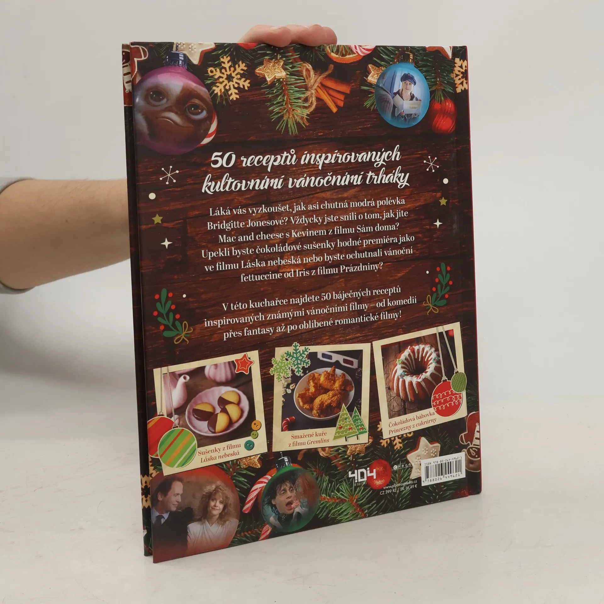 Láká vás vyzkoušet, jak asi chutná modrá polévka Bridget Jonesové? Vždycky jste snili o tom, jak jíte Mac and cheese s Kevinem z filmu Sám doma? Upekli byste čokoládové sušenky hodné premiéra jako ve filmu Láska nebeská? V této kuchařce najdete 50 báječných receptů inspirovaných známýmivánočními filmy – od komedií přes fantasy až po oblíbené romantické filmy!